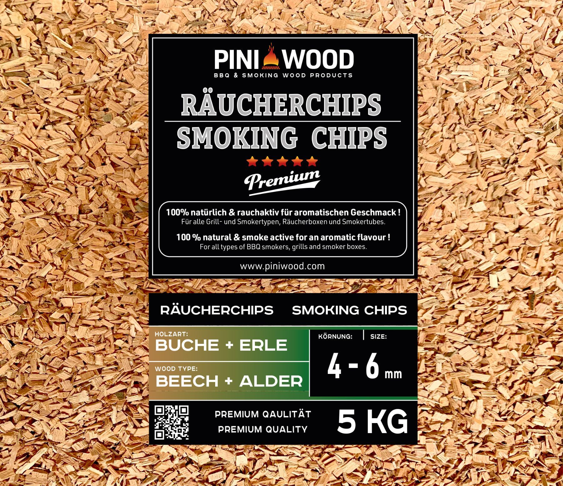 PINI 5 Kg Räucherchips Buche und Erle gemischt 4-6 mm Smoking Chips Räucherspäne