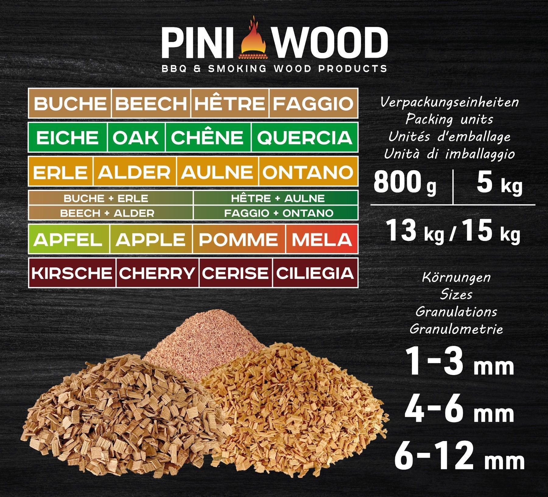 PINI 5 Kg Räucherchips Erle ohne Rinde 4-6 mm Smoking Chips Räucherspäne