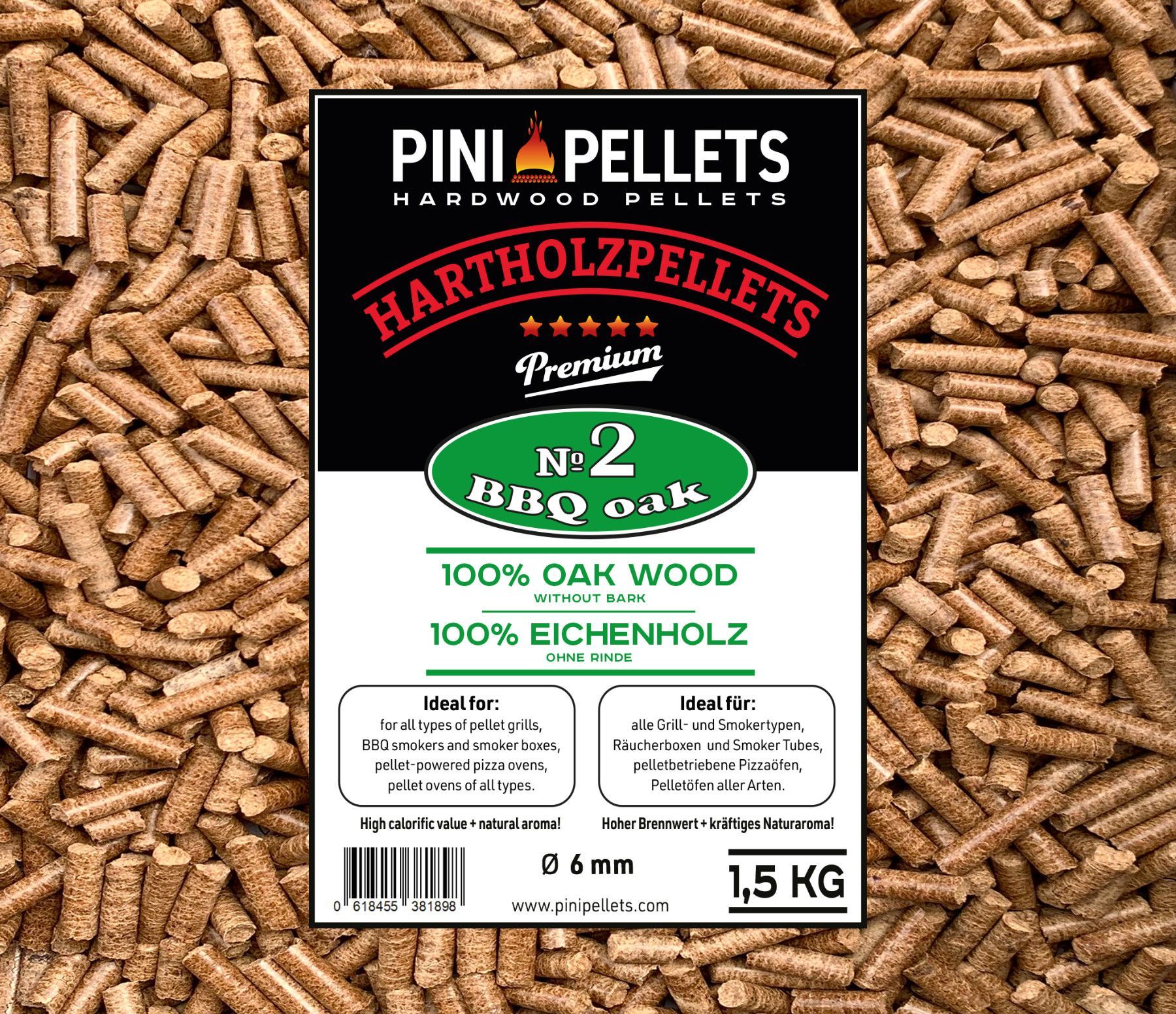 PINI Grillpellets Nr 2 BBQ Eiche 1,5 Kg Hartholzpellets zum Grillen Räuchern Smoken
