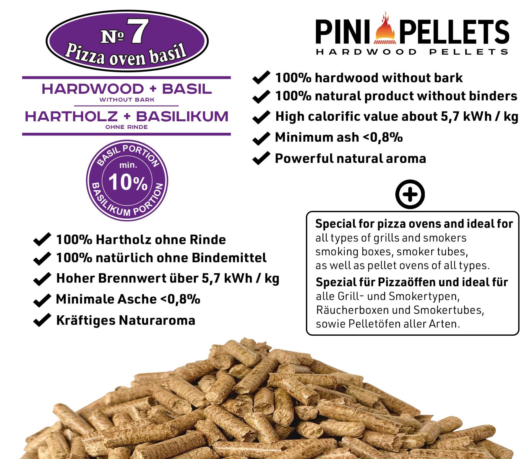 PINI Hartholzpellets Nr 7 BBQ Pizza Oven Basilikum 10 Kg Grillpellets
