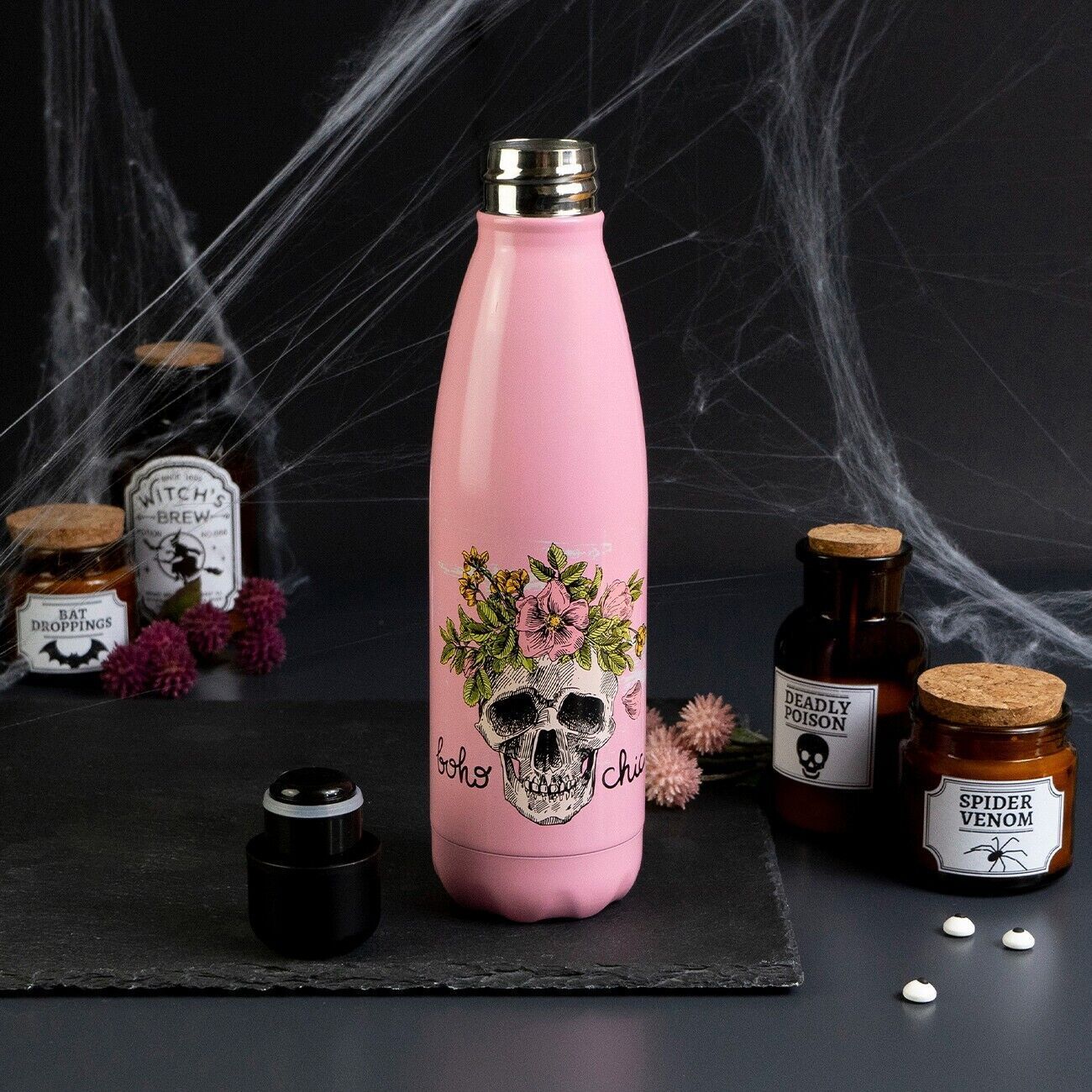 Pink Isolierflasche Skull Boho Chic 500ml Edelstahl - Lady Style
