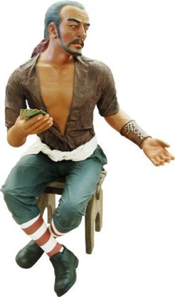 Pirat Carlos auf Stuhl lebensgroß 137cm für draußen aus GFK