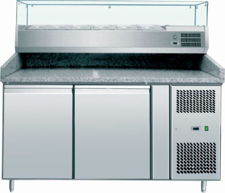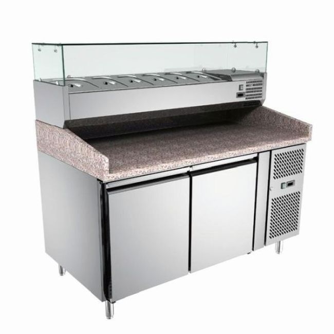 Pizza Kühltisch, Granit Rosa-Grau, 2 Türen, 151 X 80 Cm