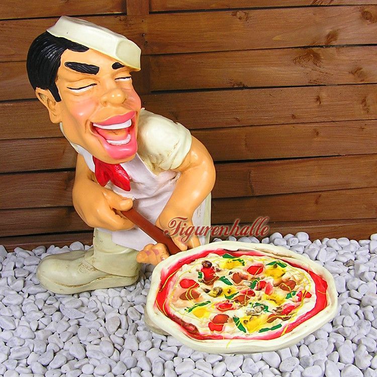 Pizzeria Pizzabäcker Koch Werbefigur Tressen Werbeaufsteller Kochmütze Tafel Figur