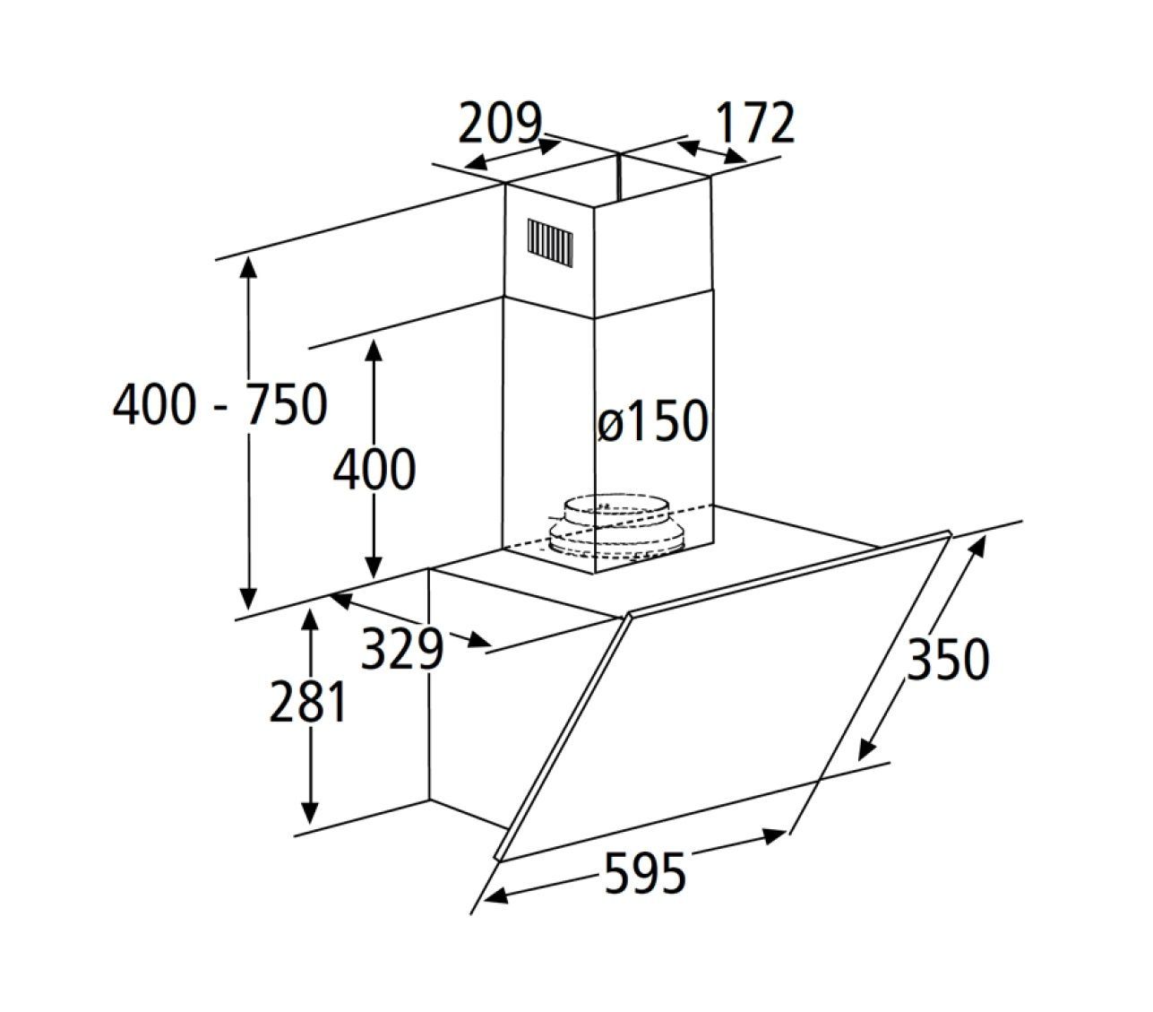 330 m³/h Leistung / Abluft- und umluftbetrieb möglich / Glas / LED / Metallfettfilter SPÜLMASCHINENFEST / Energieeffizienzklasse: A