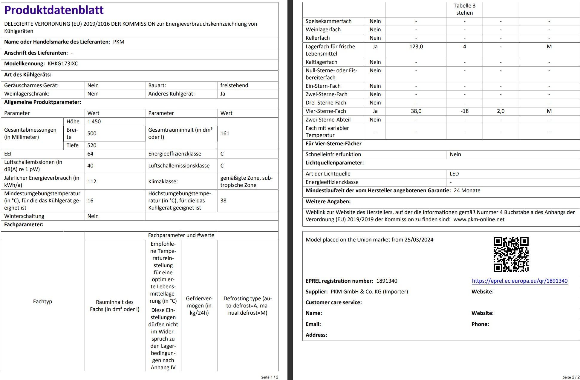 PKM PKM Kühlgefrierkombination KHKG173IXC Inox 161L Kühlschrank LED