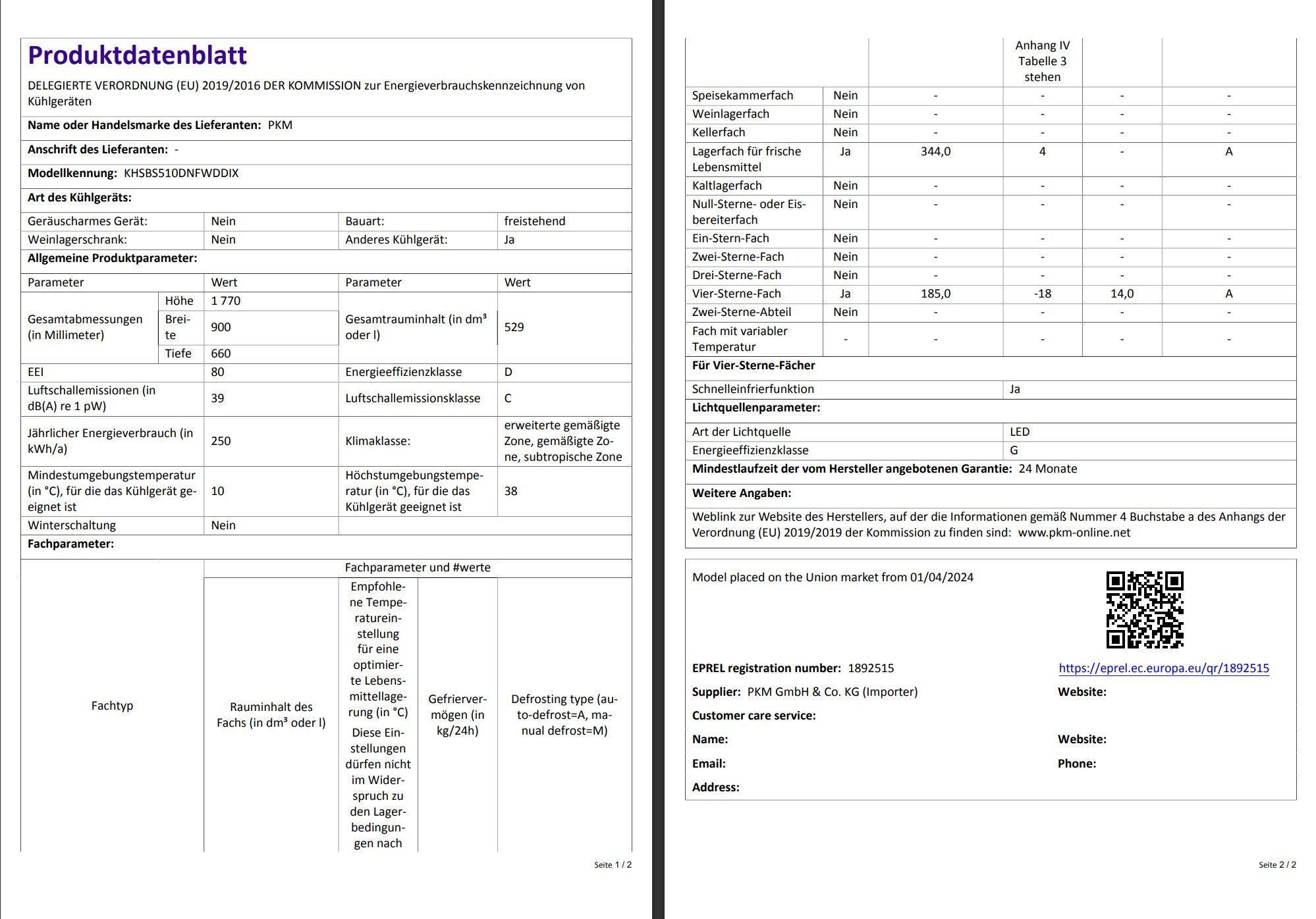 PKM PKM Side by Side Kühlschrank KHSBS510DNFWDDIX - 529 L, Wasserspender