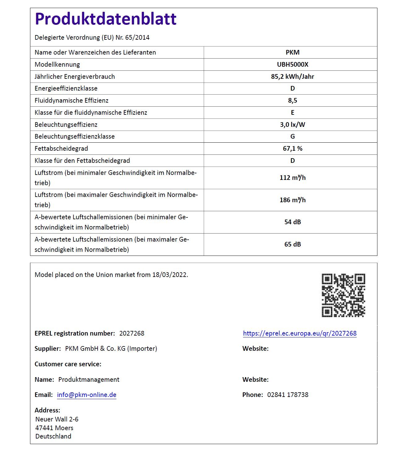 PKM PKM Unterbauhaube UBH5000X 60cm silbergrau Umluft Abluft Dunstabzugshaube LED