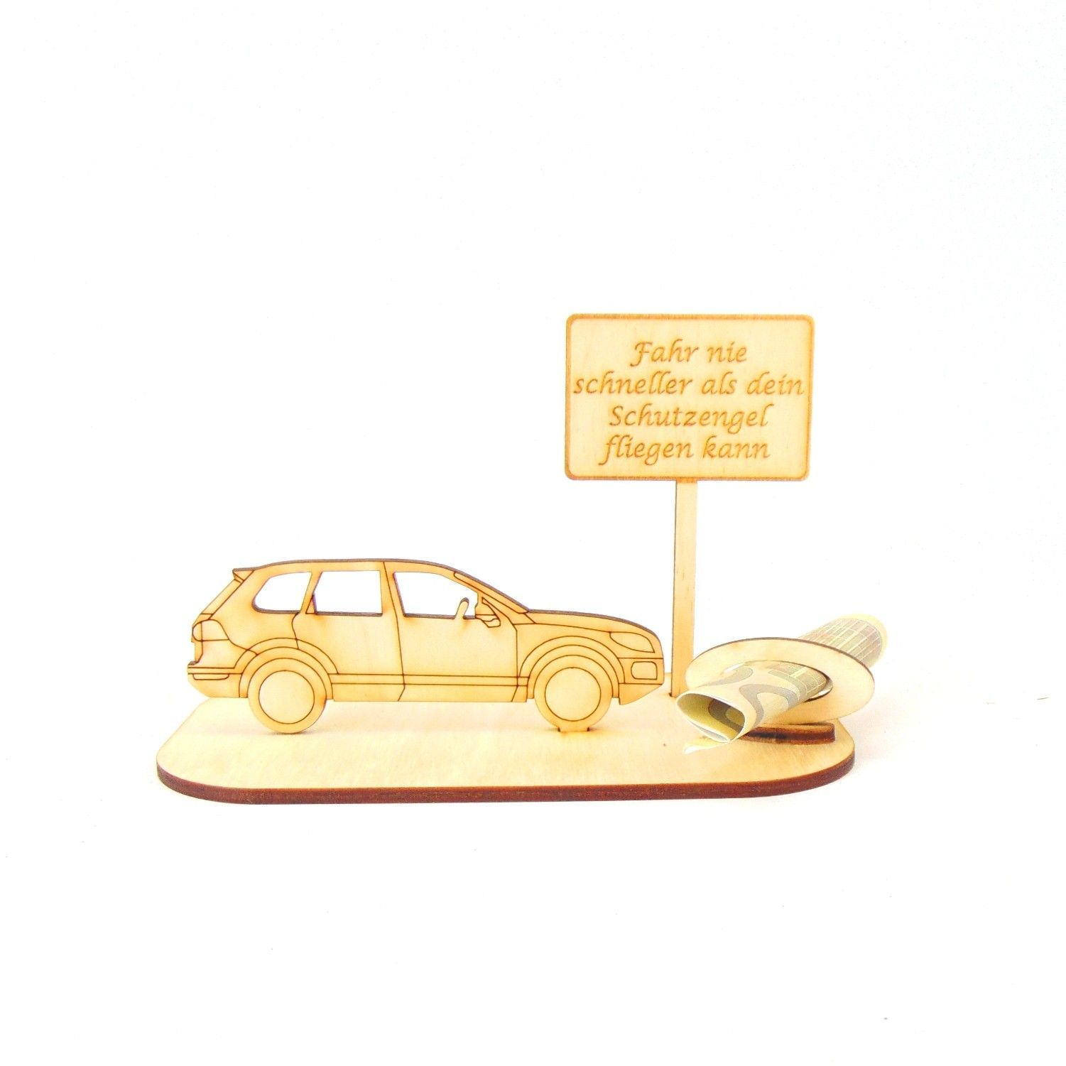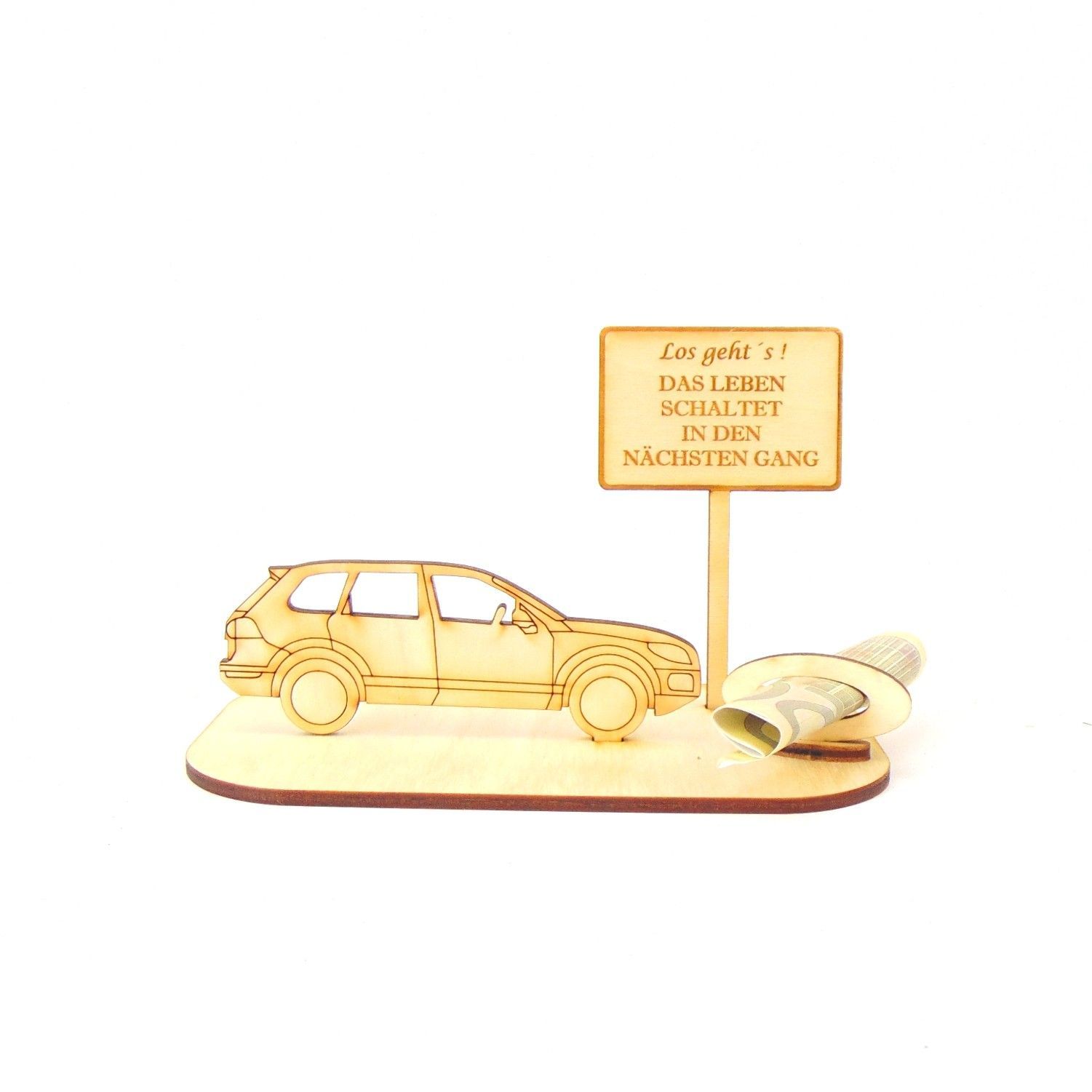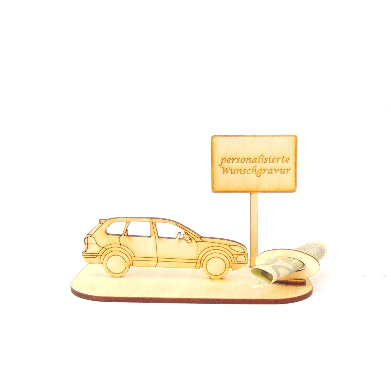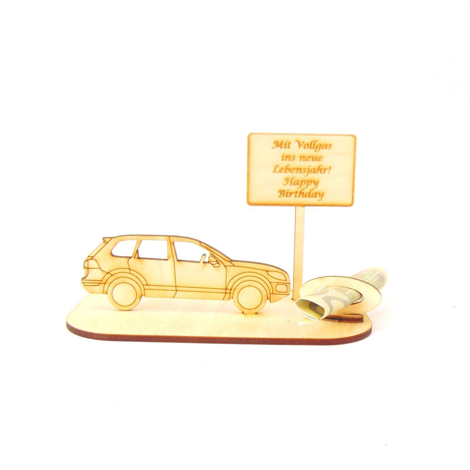 PKW / Auto Geld und Gutschein Geschenk aus Holz "Geburtstag" Personalisiert -K40-