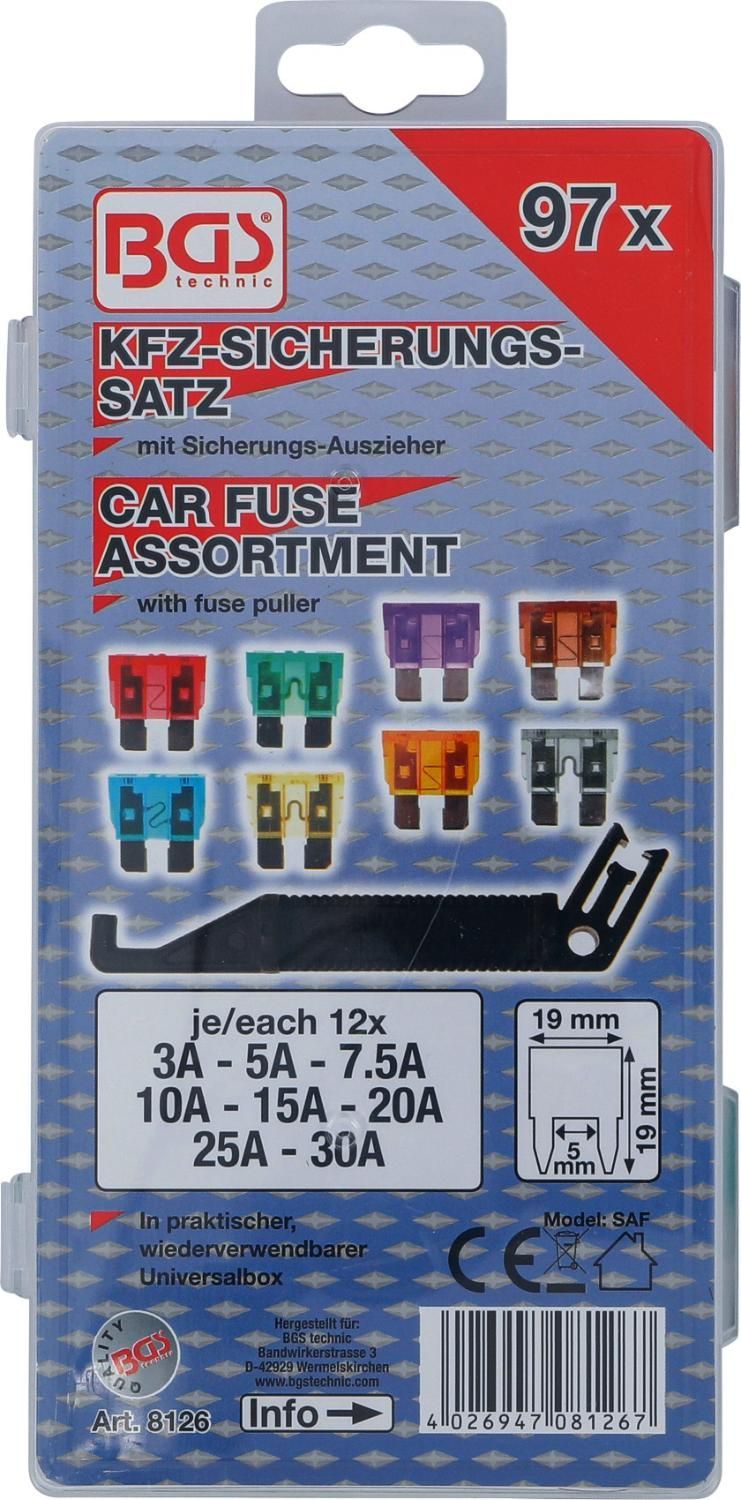 BGS Pkw-Sicherungs-Sortiment | Auto Sicherungen Flachsicherungen 97-tlg