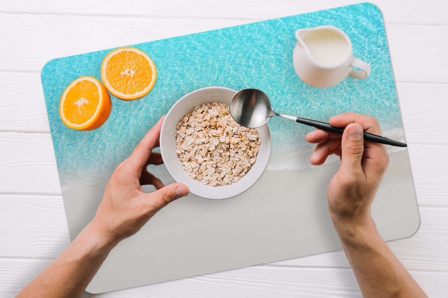 Placemats Tischset 6-teilig 45x30 cm Blau - Wasser - Strand (Gr. 45x30 cm)