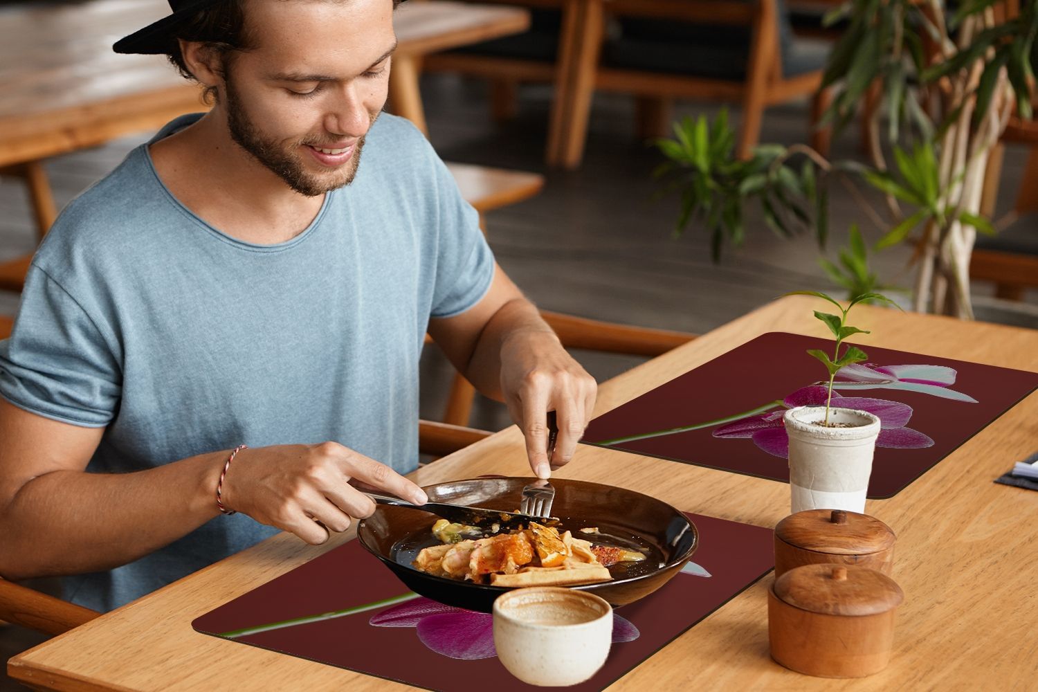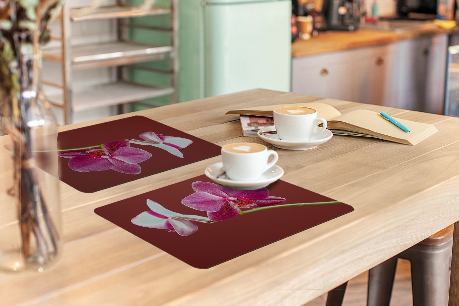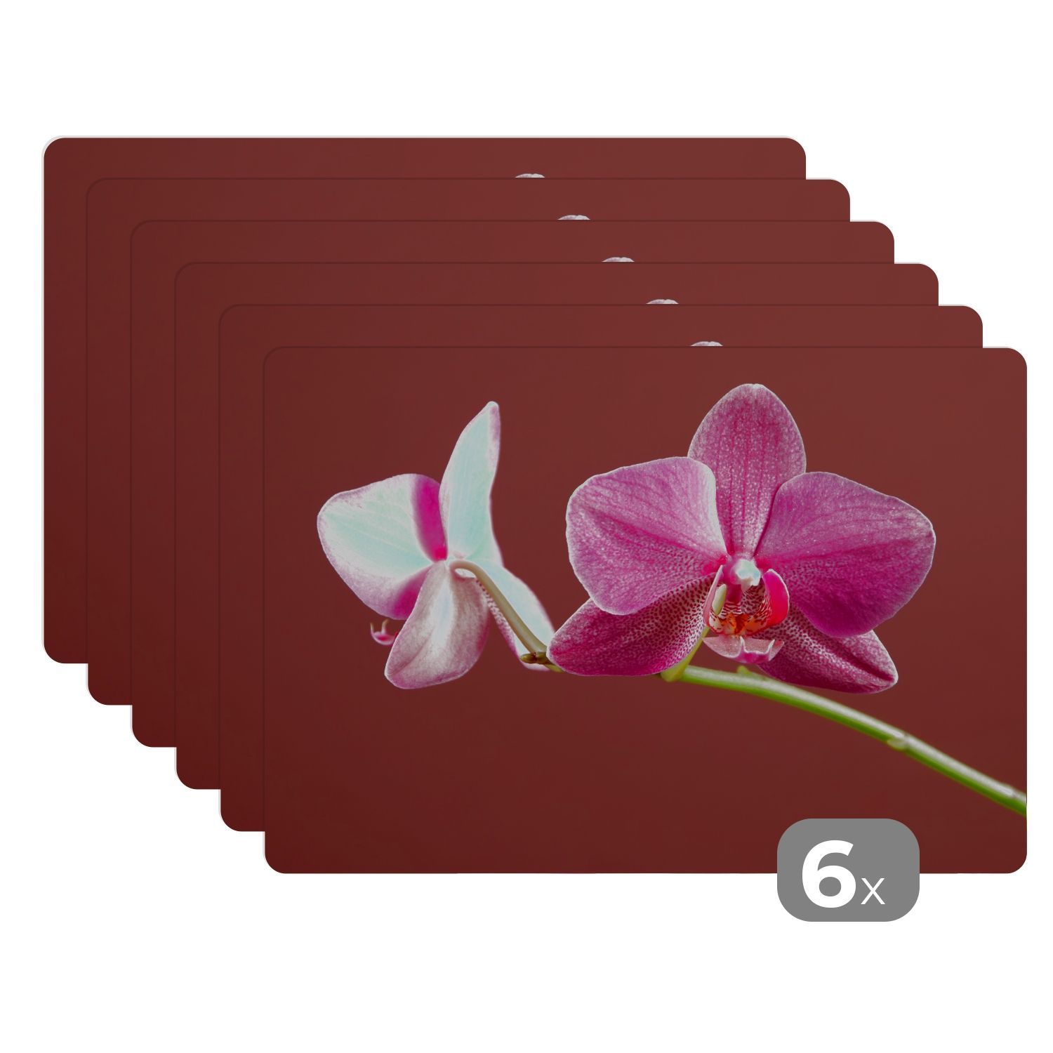 Placemats Tischset 6-teilig 45x30 cm Blumen - Orchideen - Rosa (Gr. 45x30 cm)