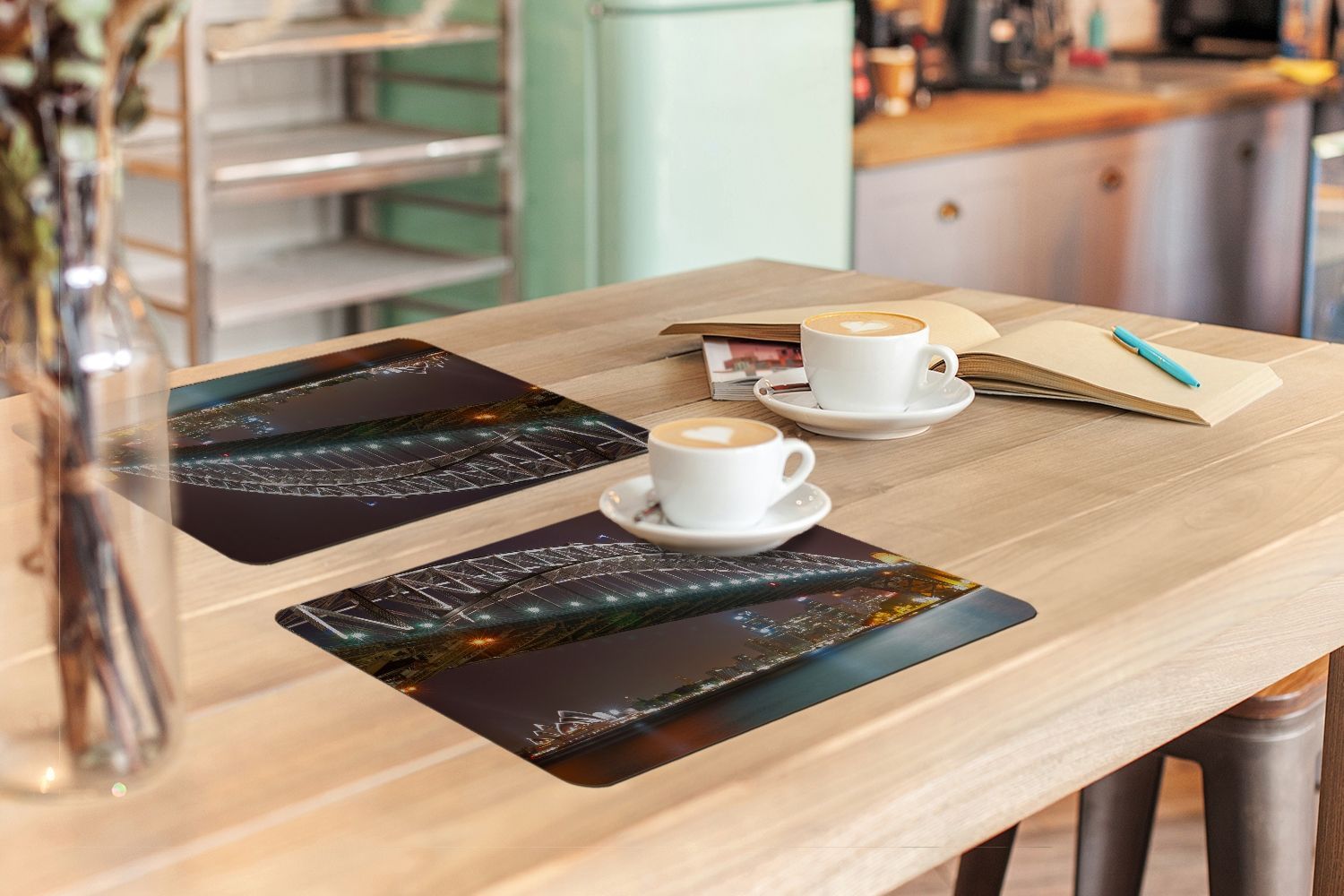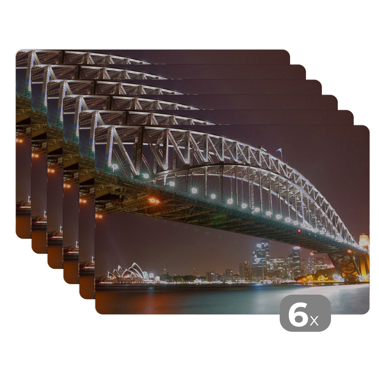 Placemats Tischset 6-teilig 45x30 cm Brücke - Nacht - Skyline (Gr. 45x30 cm)