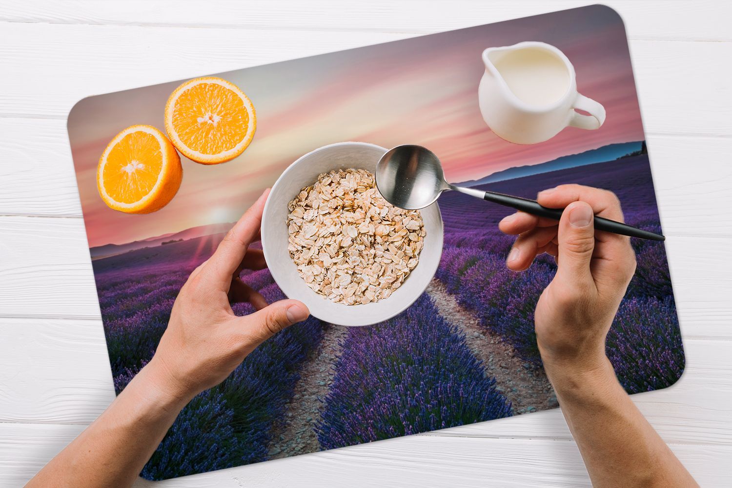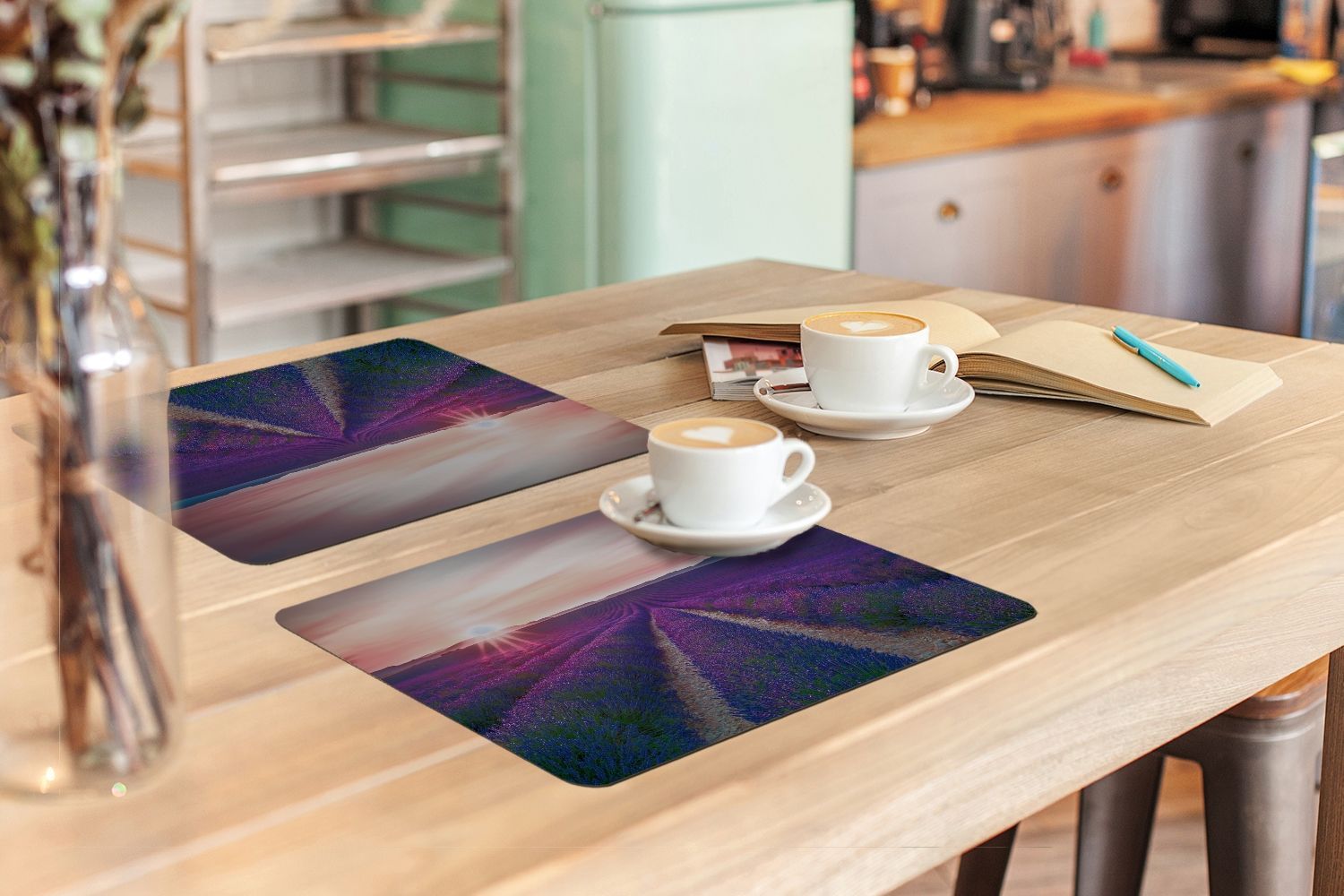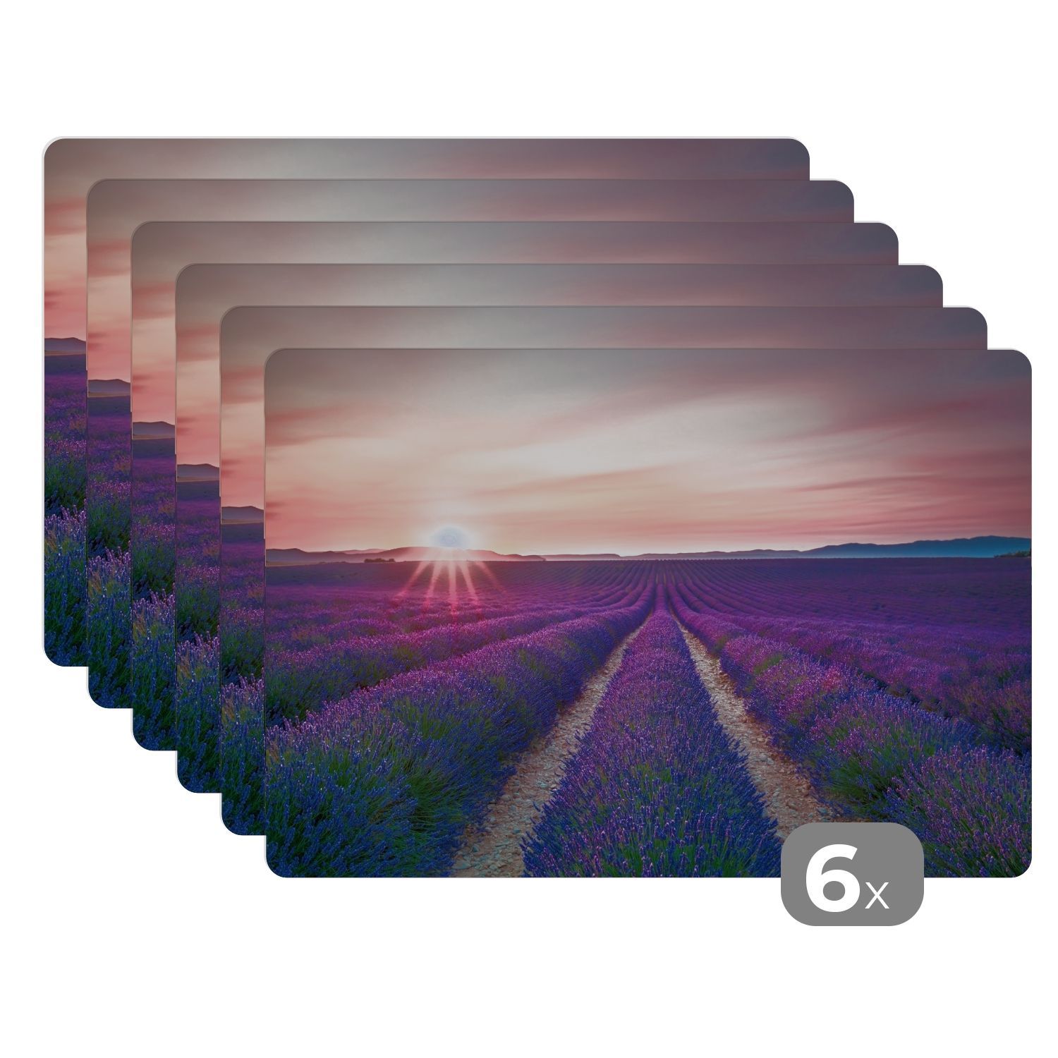 Placemats Tischset 6-teilig 45x30 cm Lavendel - Lila - Blumen (Gr. 45x30 cm)