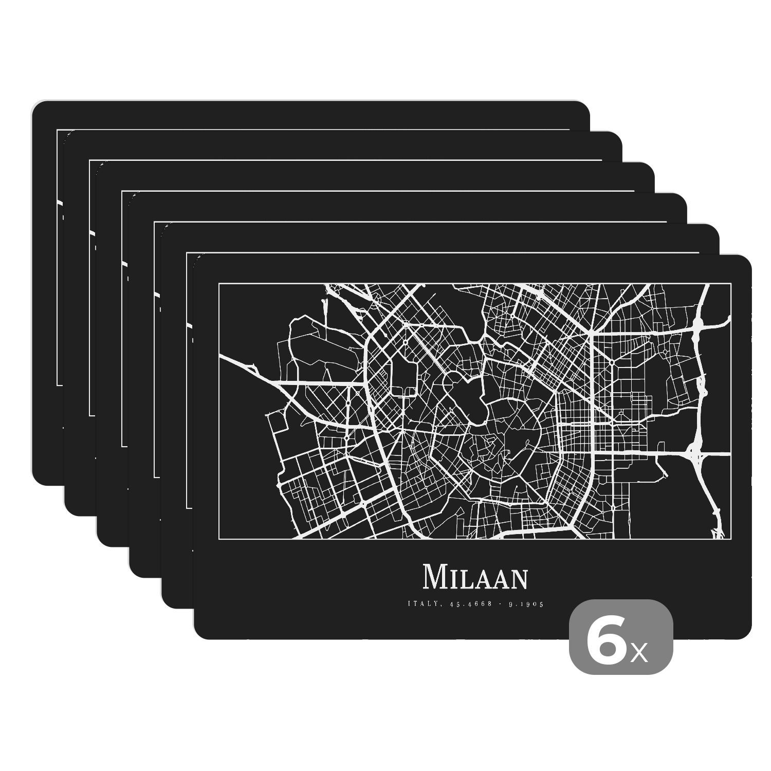 Placemats Tischset 6-teilig 45x30 cm Mailand - Karte - Stadtplan (Gr. 45x30 cm)