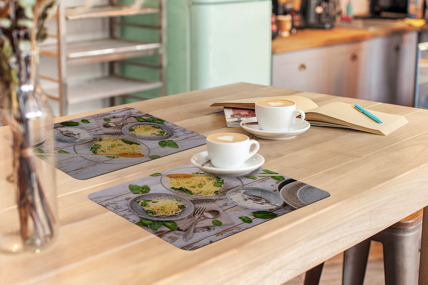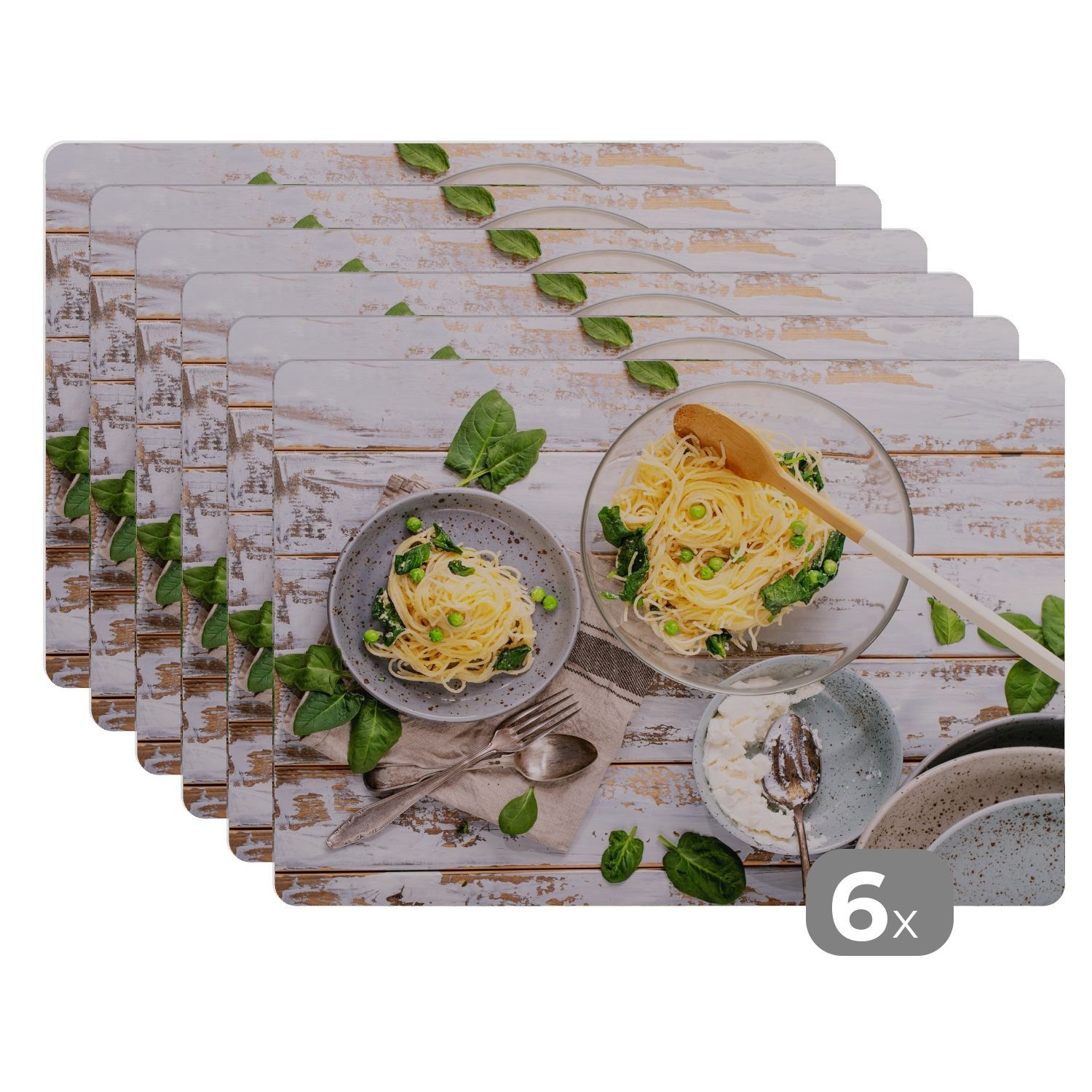 Placemats Tischset 6-teilig 45x30 cm Nudeln - Basilikum - Kochen (Gr. 45x30 cm)