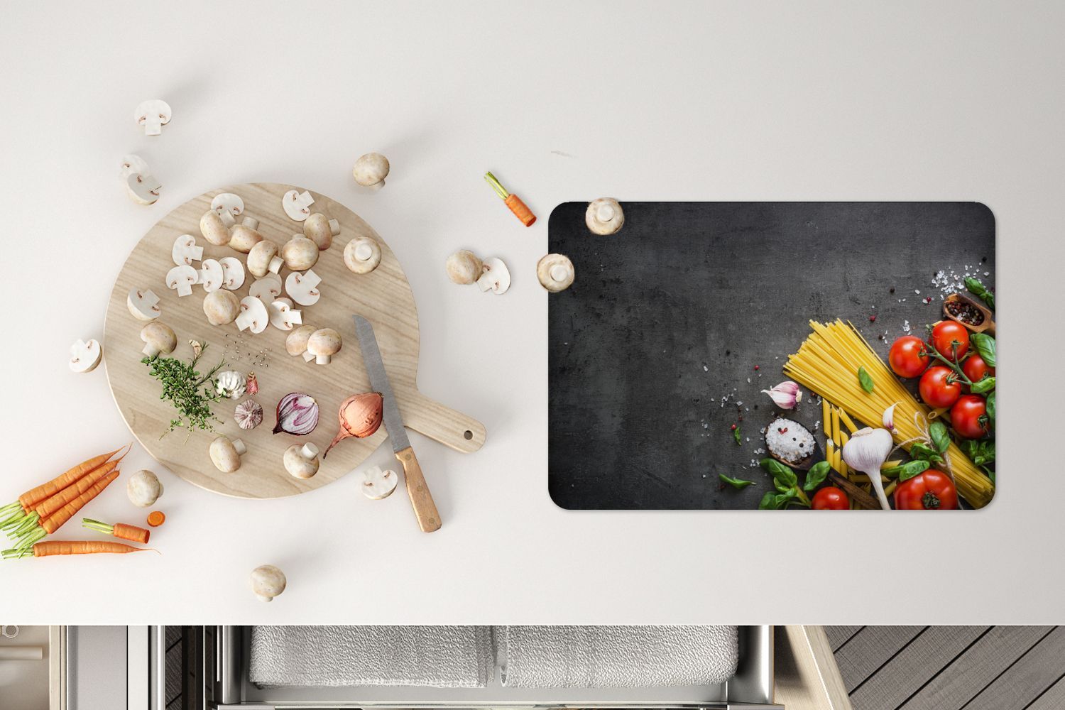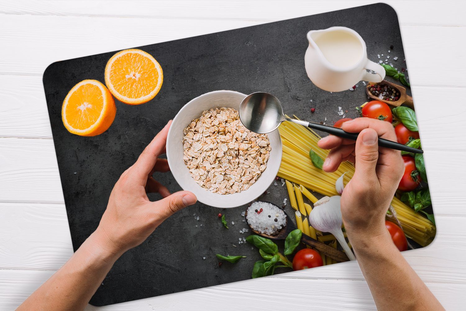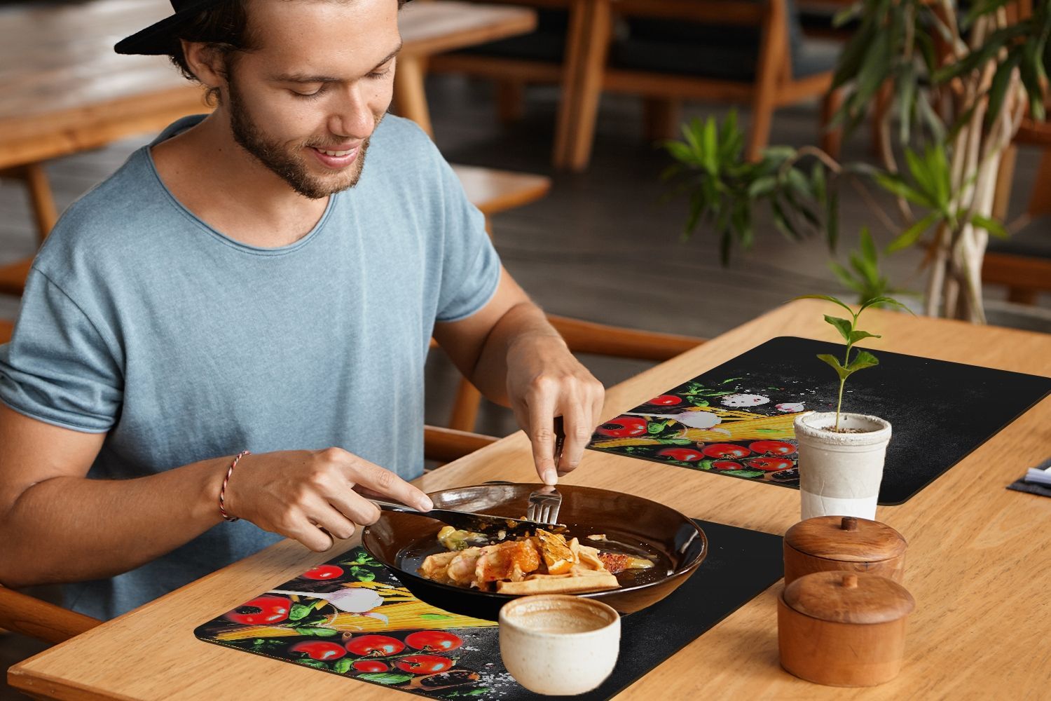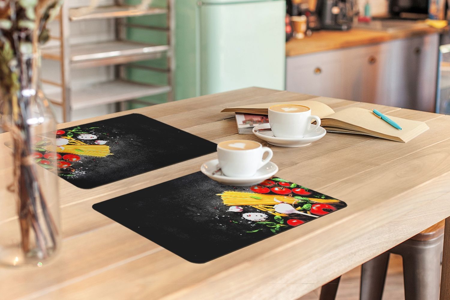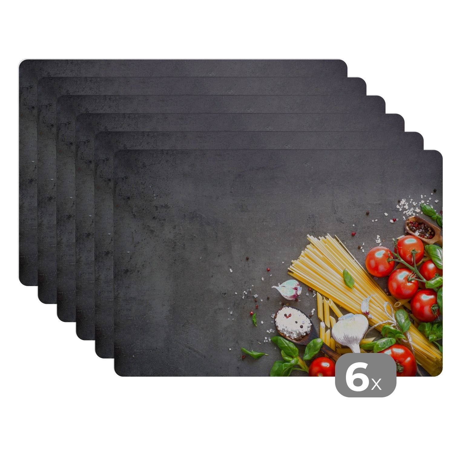 Placemats Tischset 6-teilig 45x30 cm Nudeln - Kräuter - Tomate (Gr. 45x30 cm)
