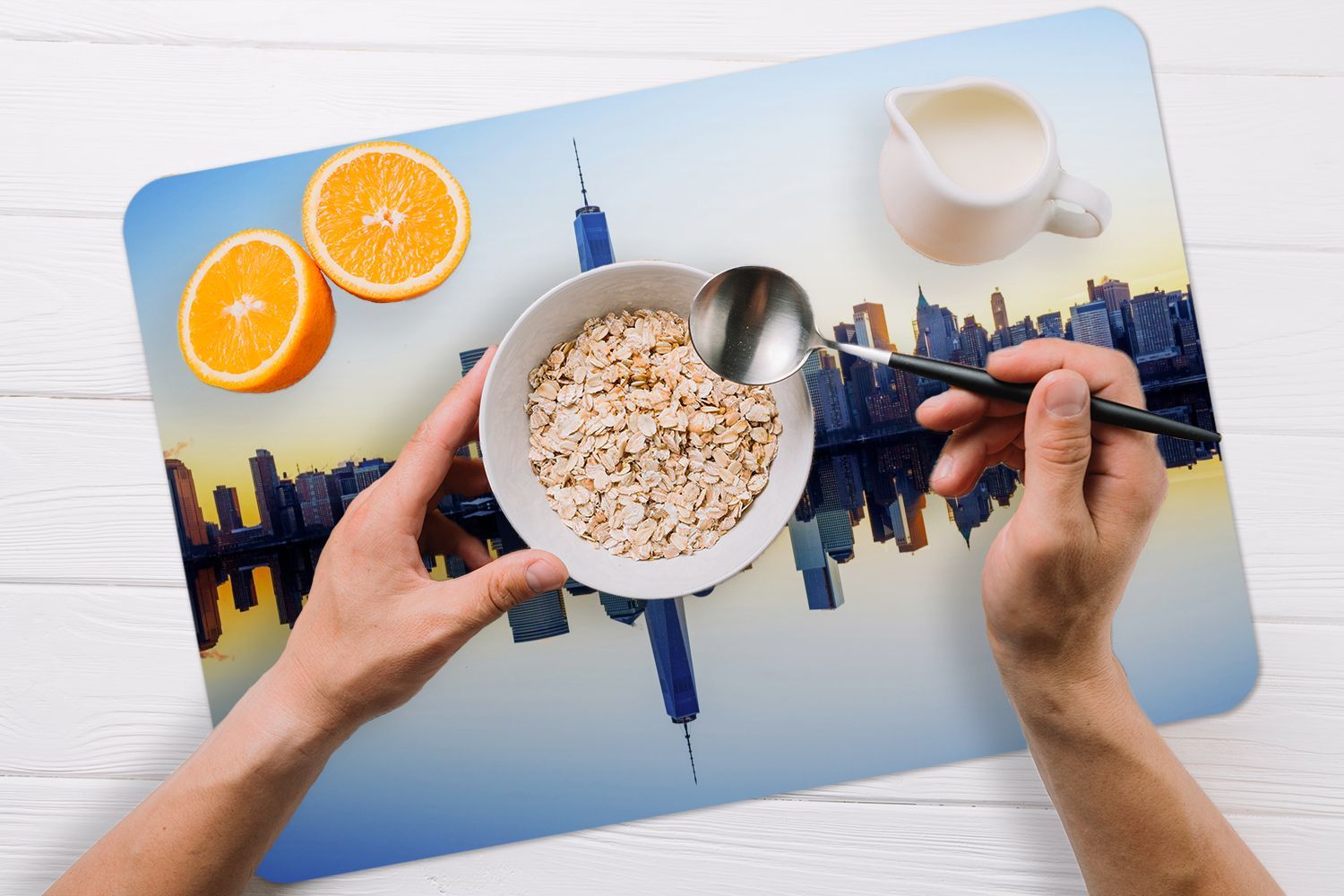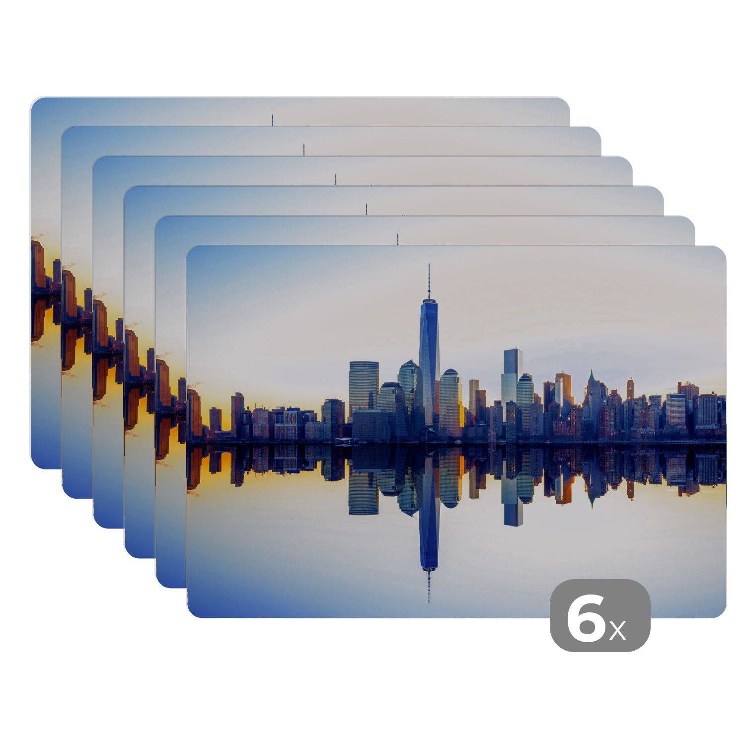 Placemats Tischset 6-teilig 45x30 cm Skyline - New York - Wasser (Gr. 45x30 cm)