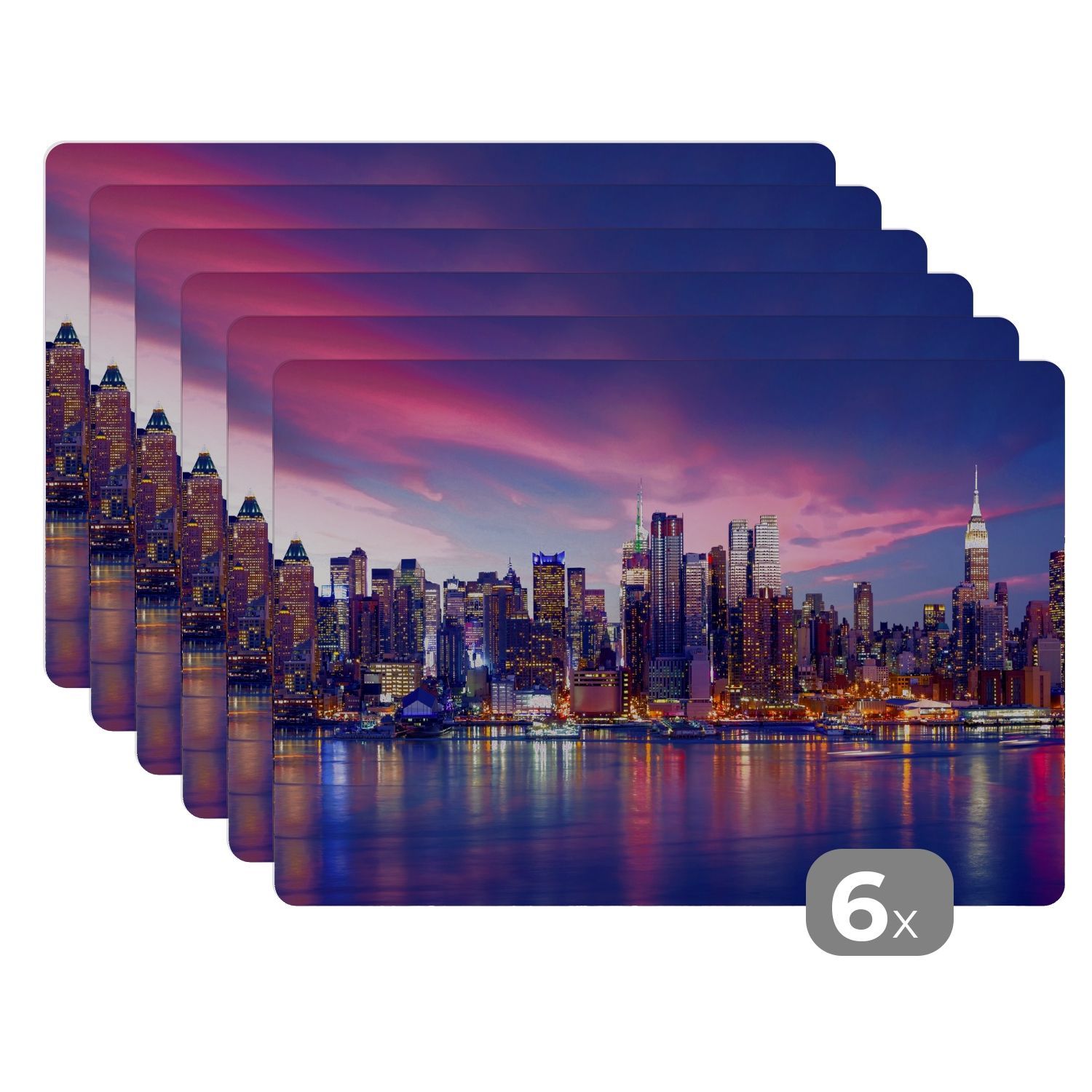 Placemats Tischset 6-teilig 45x30 cm Skyline - Wasser - Rosa - New York