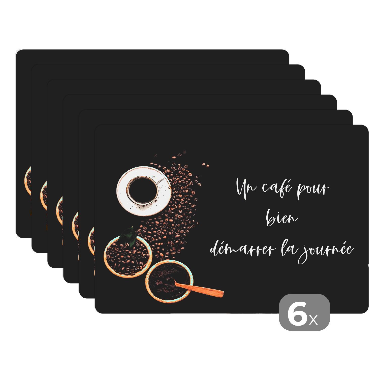 Placemats Tischset 6-teilig 45x30 cm Sprichwörter - Zitate - Un café pour bien déma