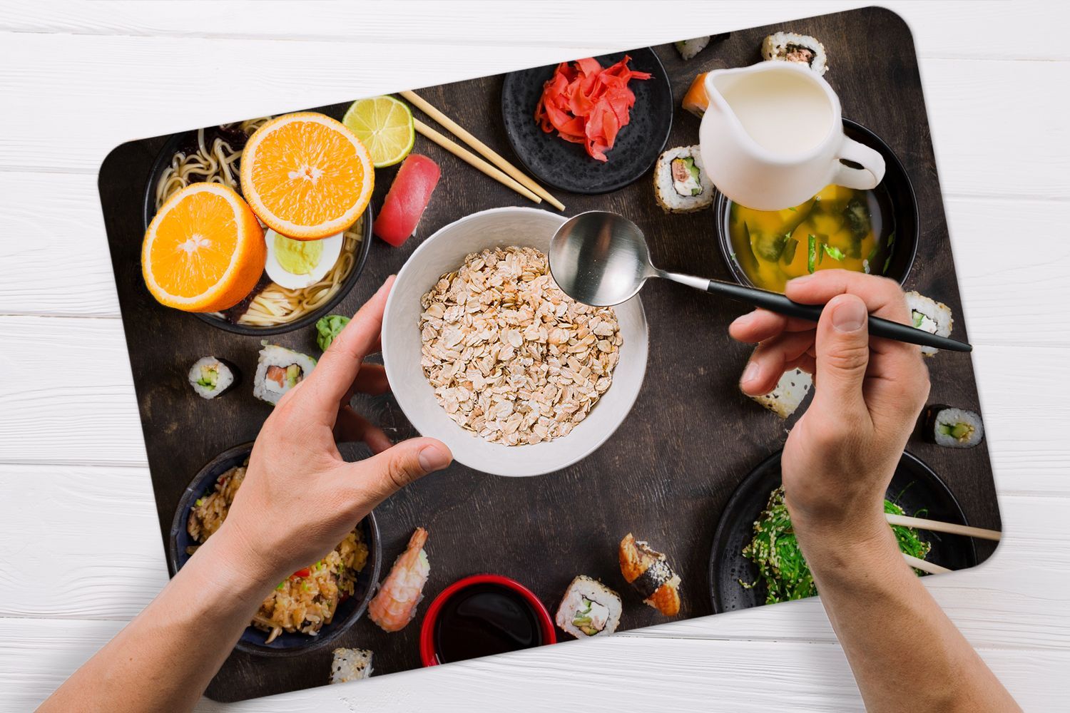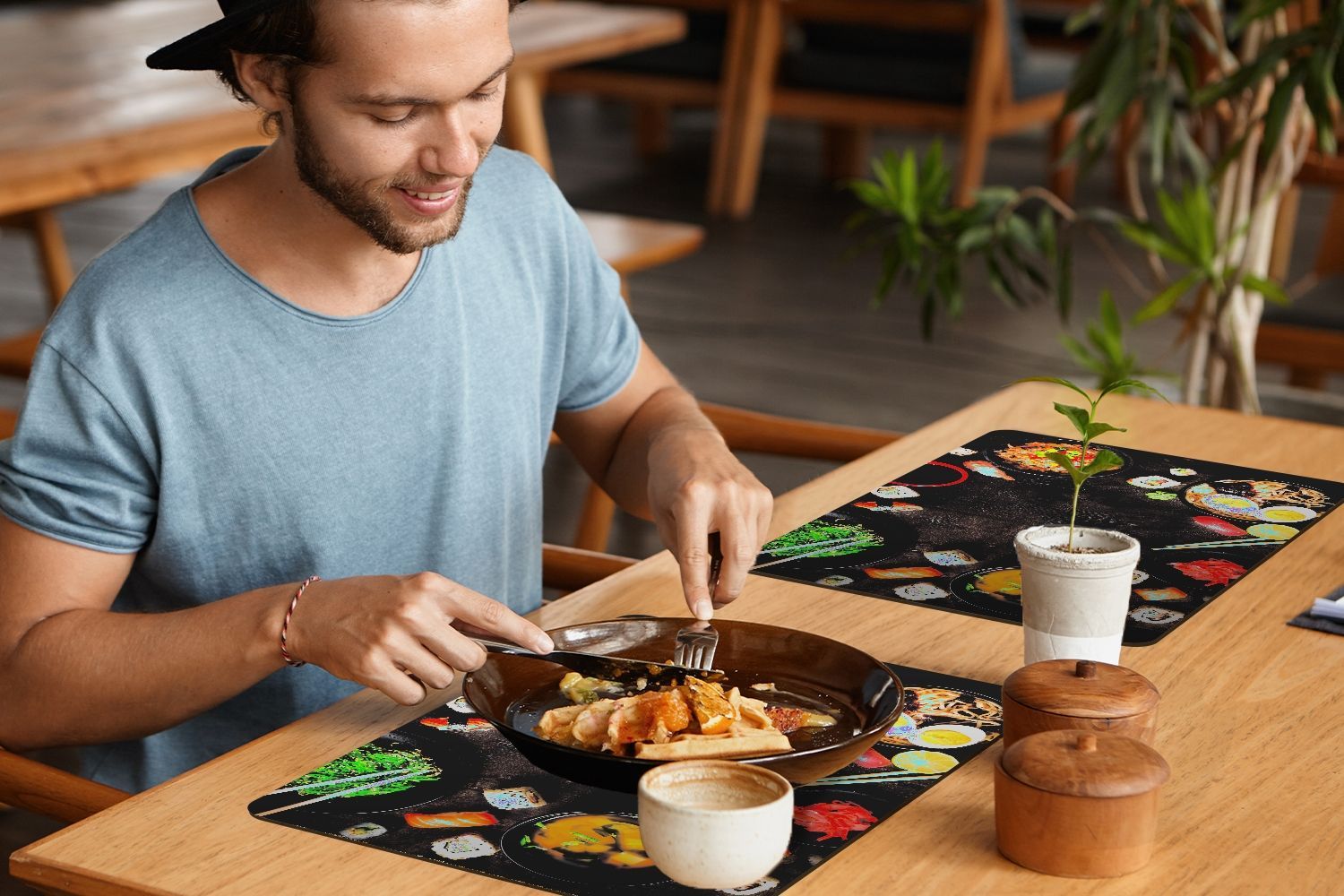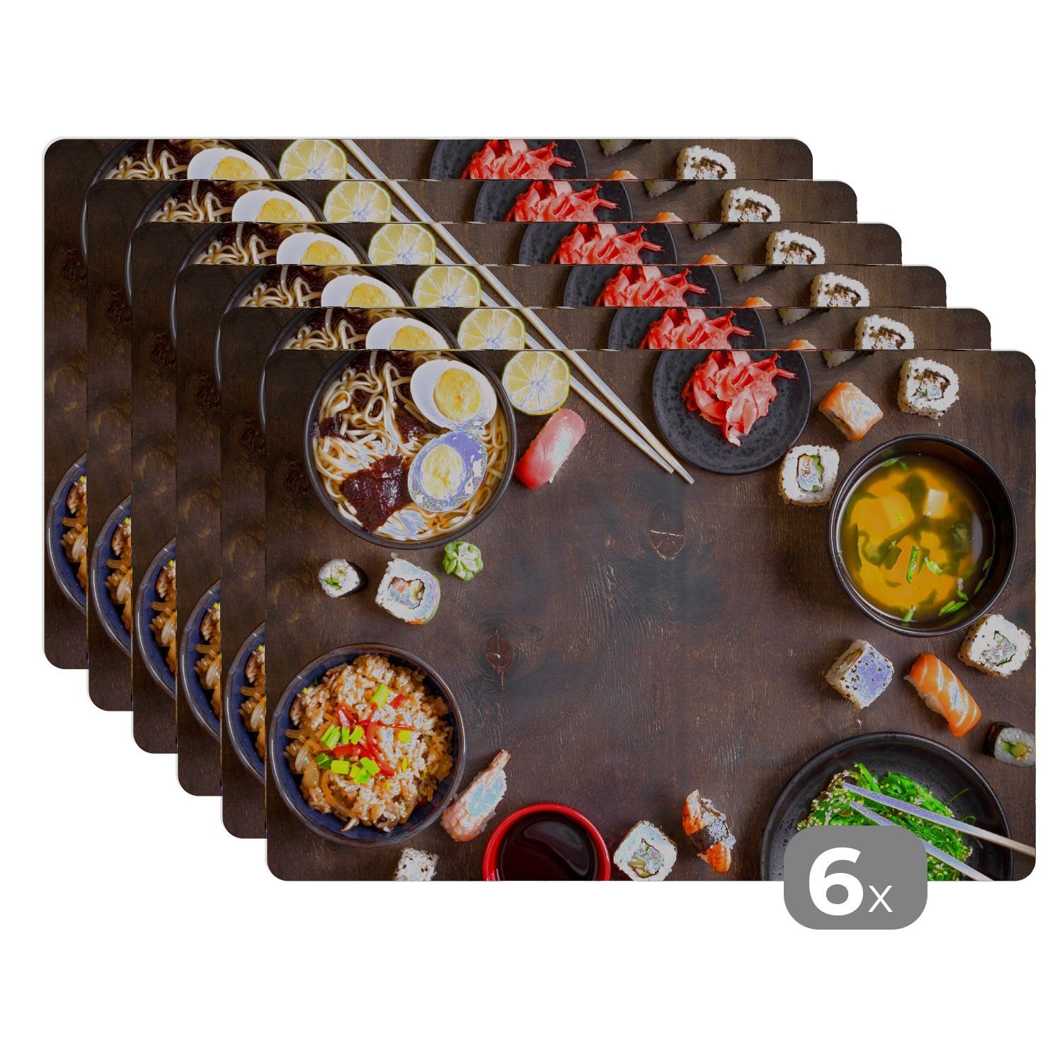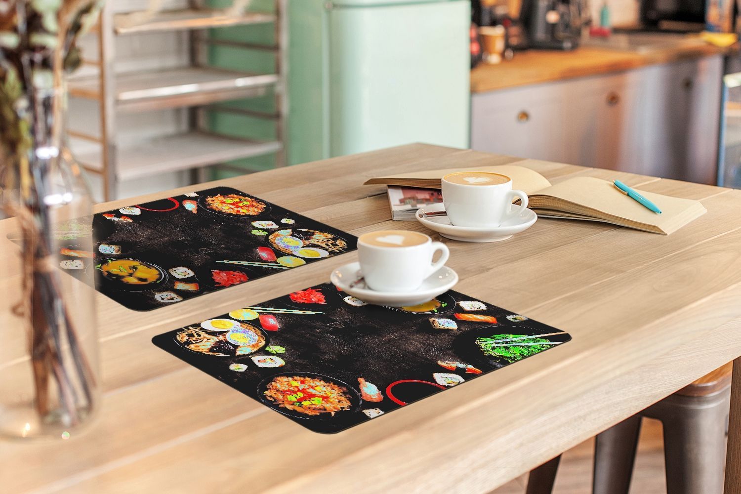 Placemats Tischset 6-teilig 45x30 cm Sushi - Essstäbchen - Kräuter - Gewürze