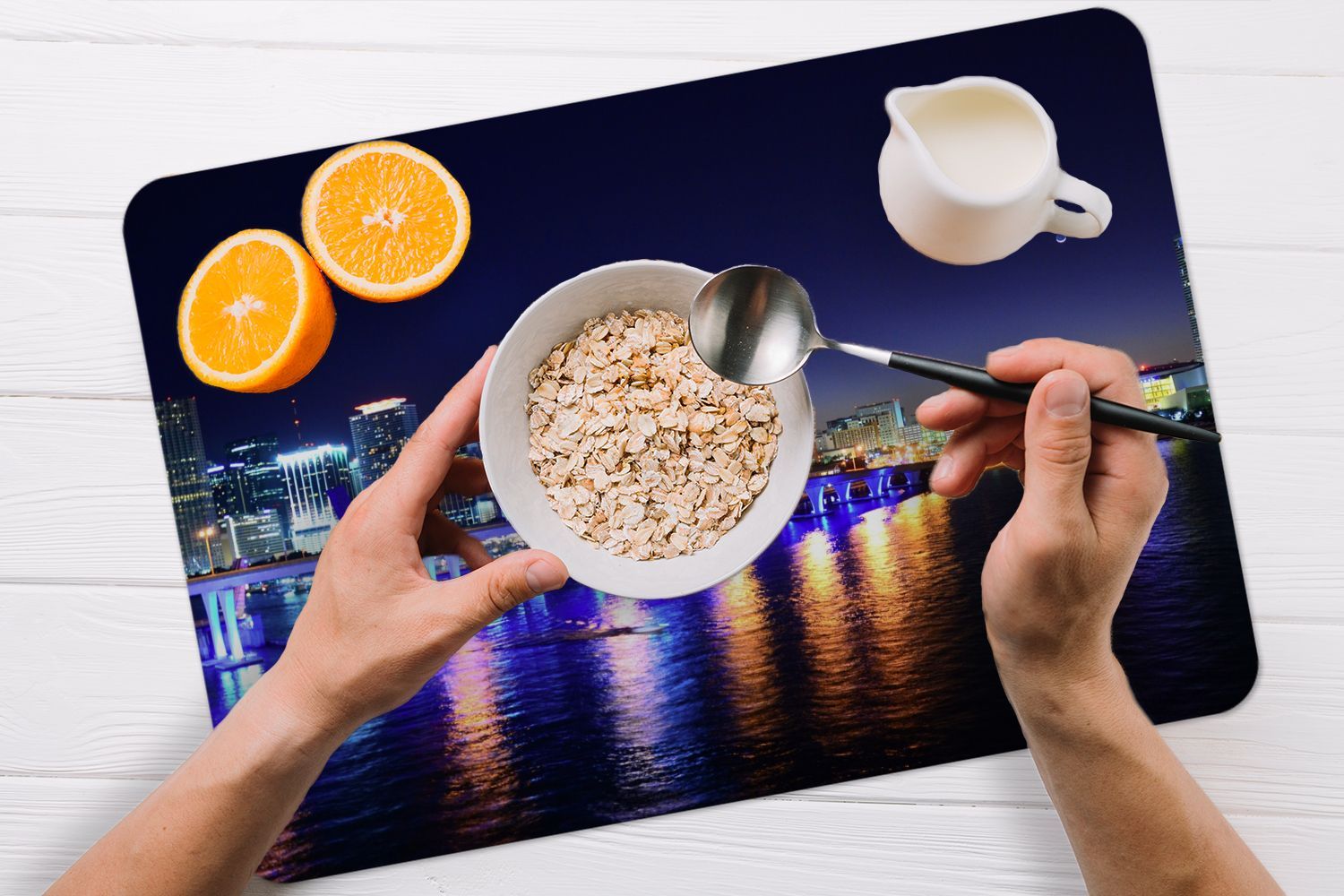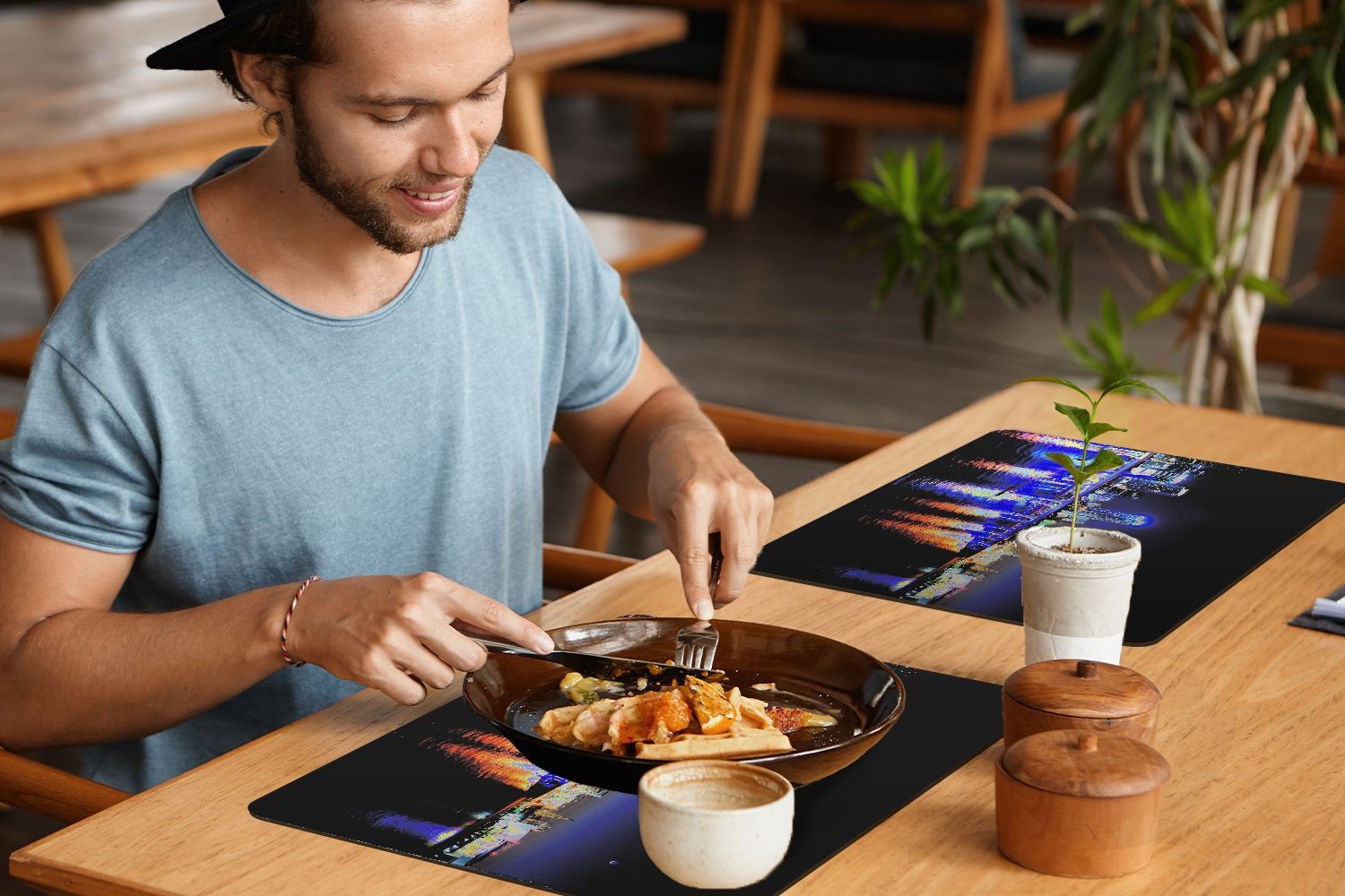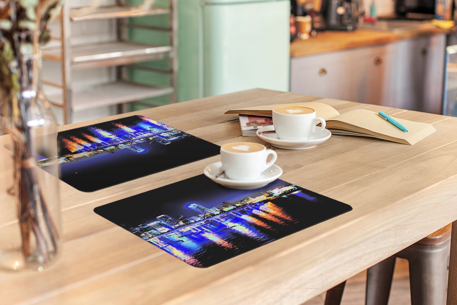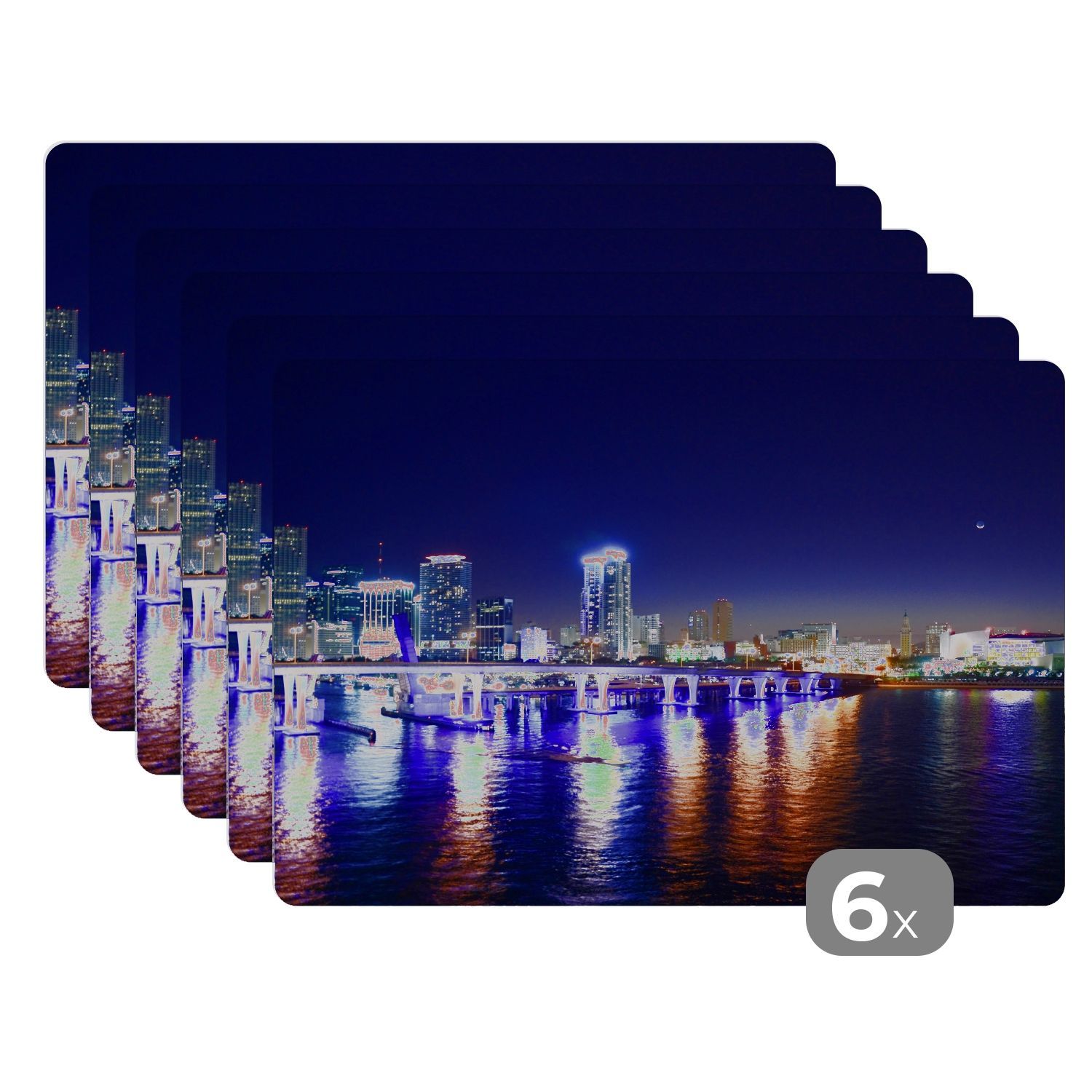 Placemats Tischset 6-teilig 45x30 cm Wasser - Licht - Nacht - Skyline