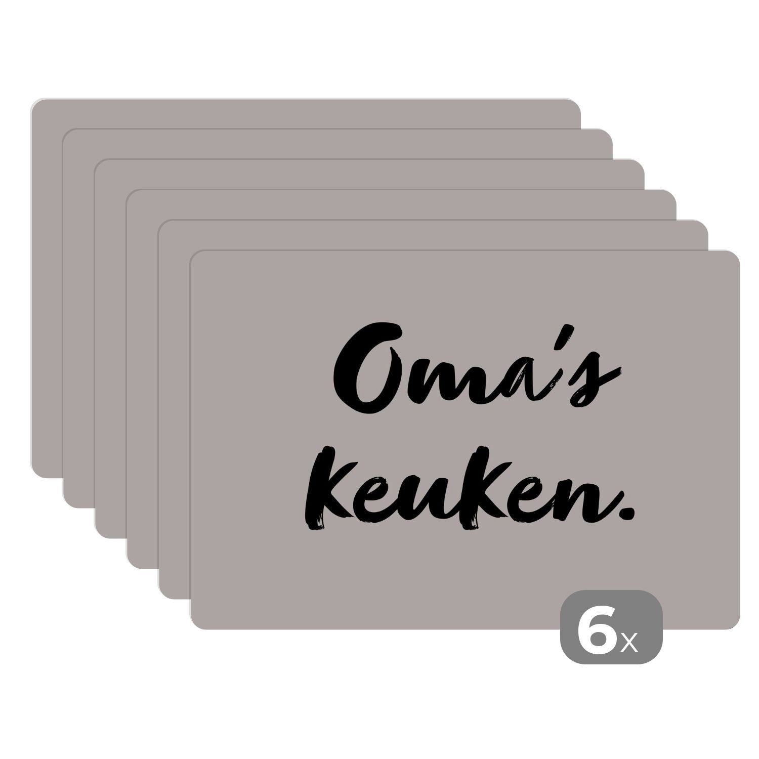 Placemats Tischset 6-teilig 45x30 cm Zitat - Omas Küche - Taupe (Gr. 45x30 cm)