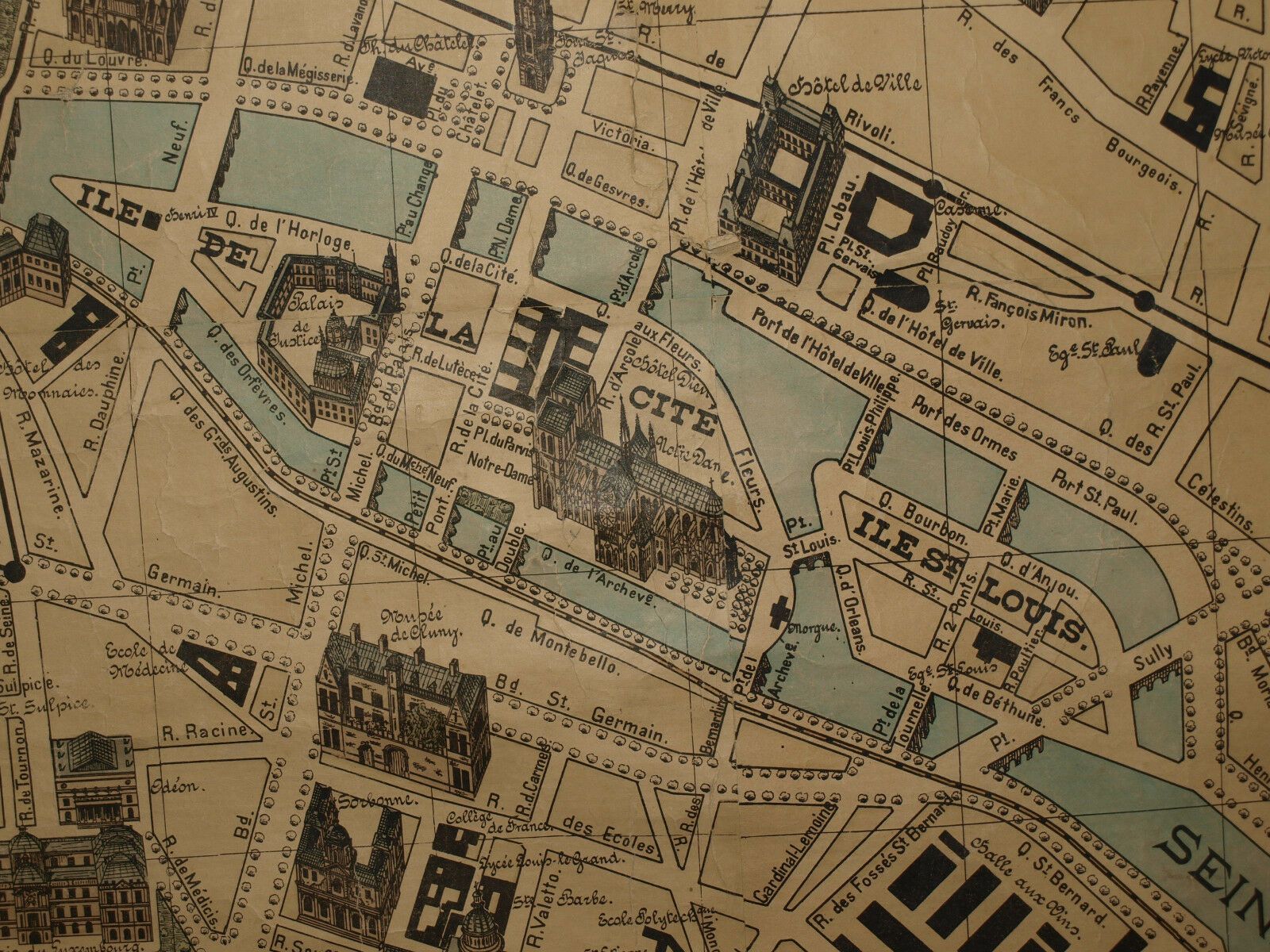 Plan Pittoresque de la Ville de Paris 175x138 german wall map print 1902 vintage