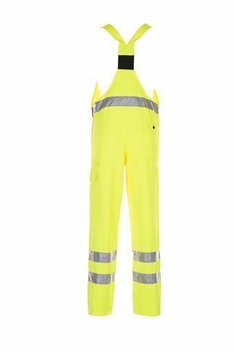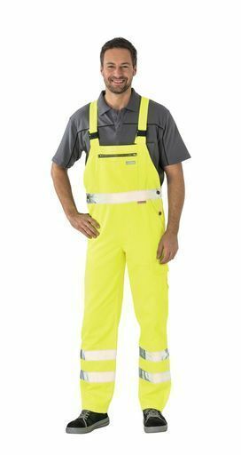 Planam Warnschutz Latzhose, 3M Scotchlite Reflexgewebe, orange und gelb