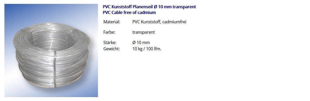 Planenseil 10 mm Seil transparent Seilendverschluss mit oder ohne Simplexhaken