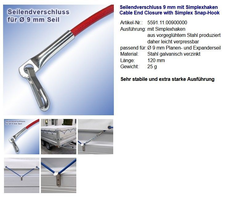 Seilendverschluß mit Simplexhaken