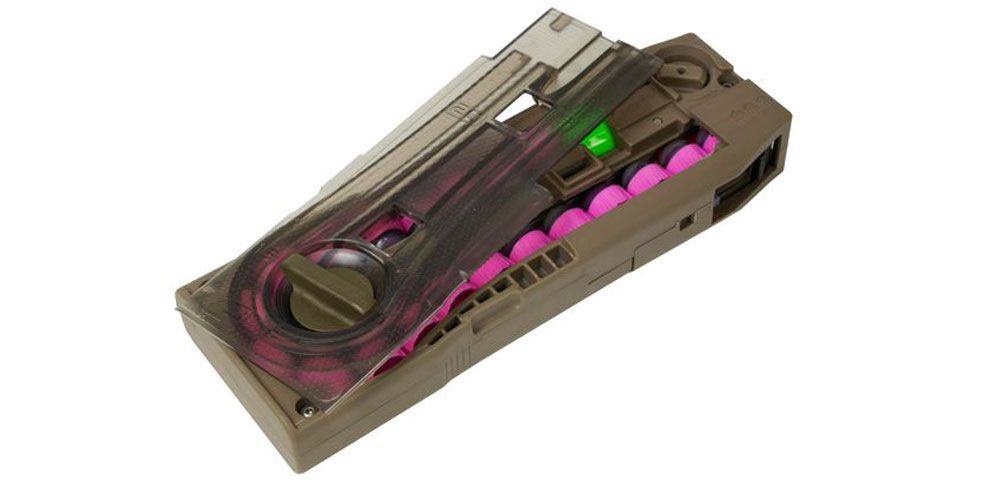 Mit dem CF20 Magazin von Planet Eclipse, hat das zeitaufwändige und umständliche wenden des Magazins ein Ende. Es können nun ohne Unterbrechung 20 Schuss an First Strike Paintballs oder 21 Schuss an normalen Roundballs verschossen werden. Auf der linken Seite des Magazins befindet sich die durchsich