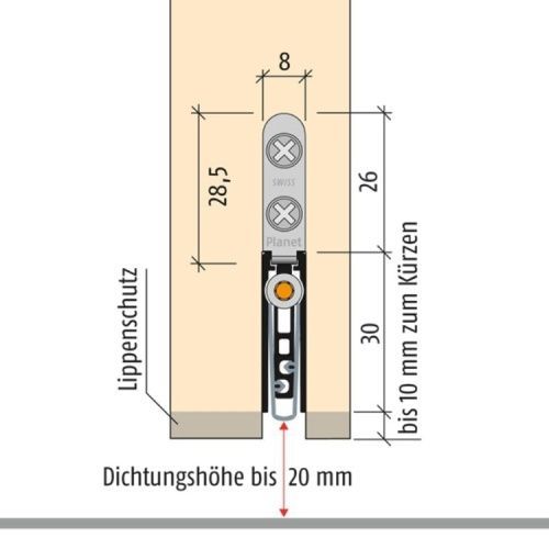 Planet Planet US Bodentürdichtung Absenkdichtung einseitig Rauchschutz Schallschutz