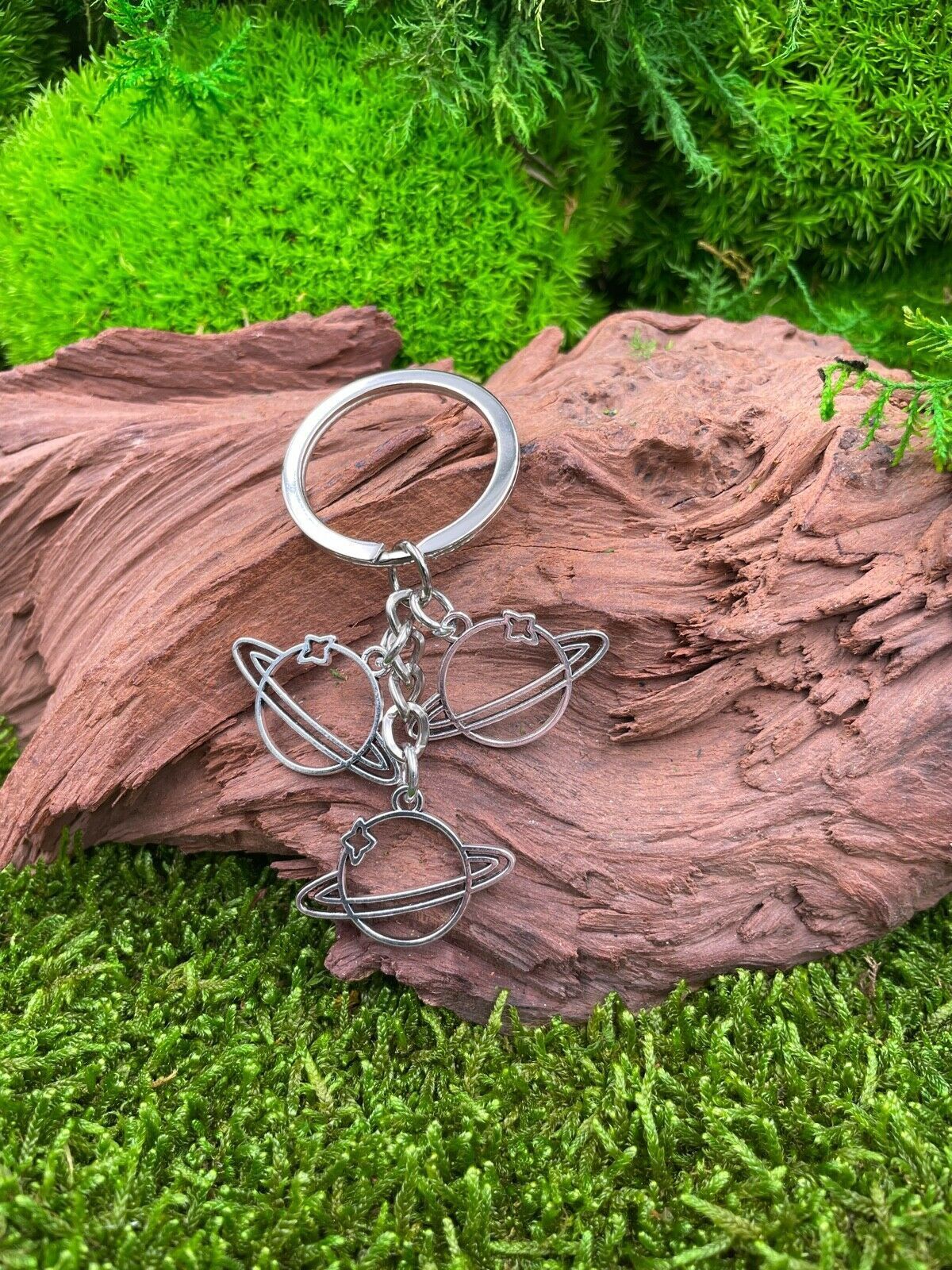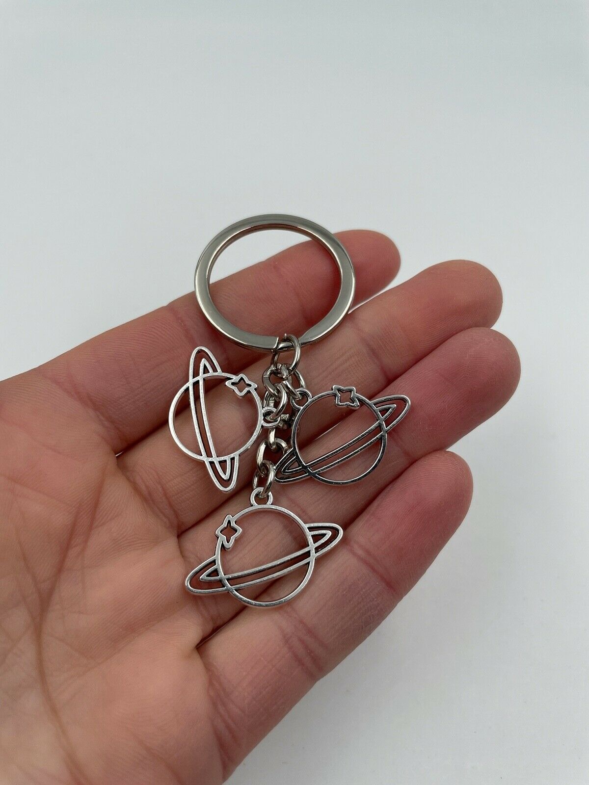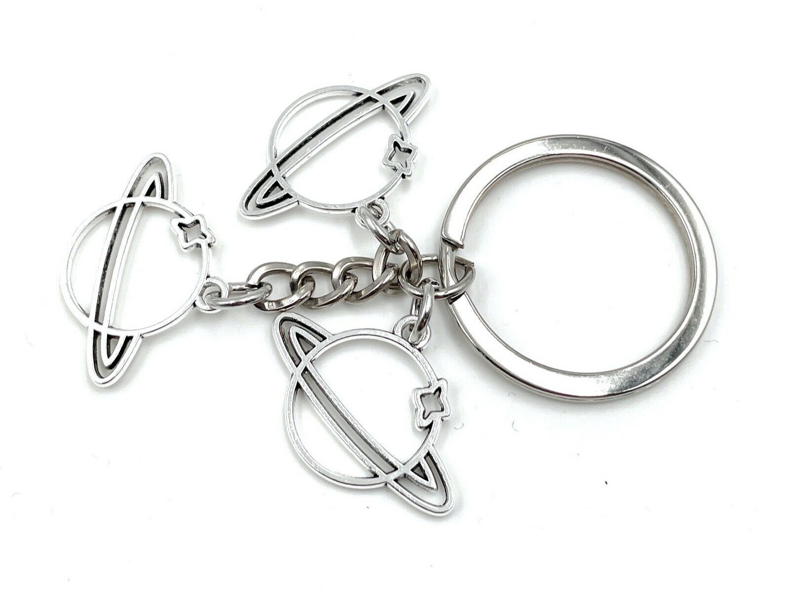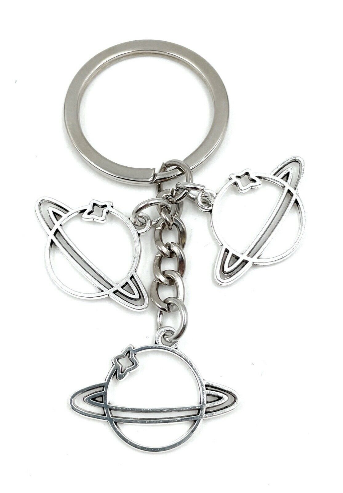 Planeten Pluto Saturn Jupiter Schlüsselanhänger aus Metall Glücksbringer silber