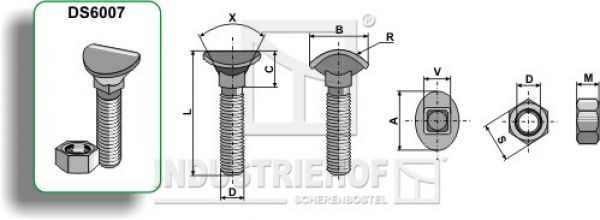 Planetschraube - M10x48 - 8.8 30.007 Planetschraube - M10x48 - 8.8 Technische Datem: Bestellnr.: 30.007 Gewicht: 0.400 kg Güte: 8.8 Gewinde: M10 A: 19 L: 48 M: 10 B: 15 S: 17 C: 7.5 R: 16 V: 10 Mutter nach DIN 934-8 X 90° Verpackungseinheit: 10 Stk. Keine Originalteile Obenstehende Original Ersa