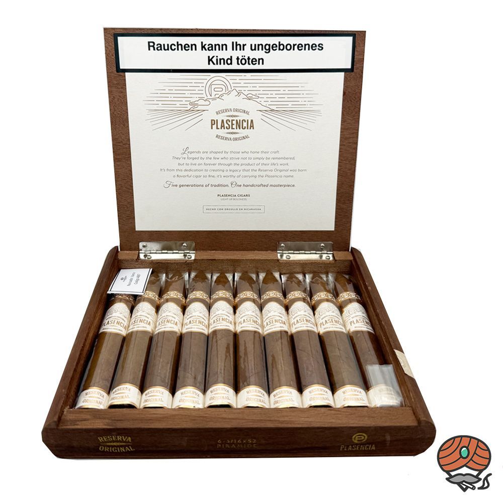 Plasencia Reserva Original Piramide Zigarren in der 10er Kiste Die Plasencias Reserva Original ist eine Puro Nicaragua. Die für diese Zigarren verwendeten Tabake werden nach der Ernte für mindestens 3 Jahre gelagert und gereift. Das Ergebnis ideser langen Reife ist der unverwechselbare Charakter mit