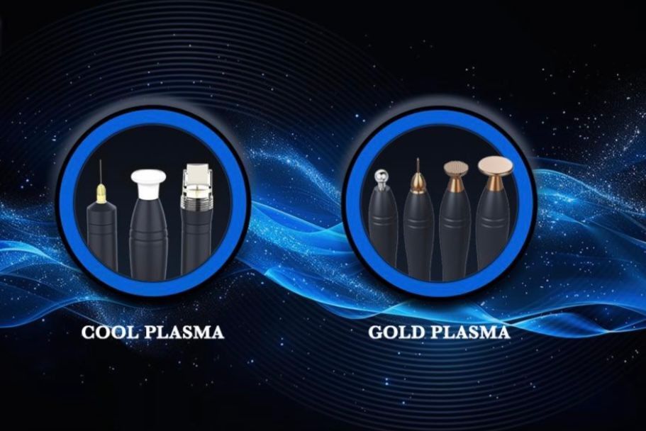 Mit Plasma Roller - Plasma Profi Box Cold & Gold Gerät mit vier Handstücken Komplett für den Profi Salon, zum behandeln Gesicht Hals und Dekolleté. Für verschiedene Hautproblem wie Falten oder große Poren, Entzündungen durch unreine Haut, Falten, Lifting, Geweberschlaffung, Fresh up oder zur Kollage