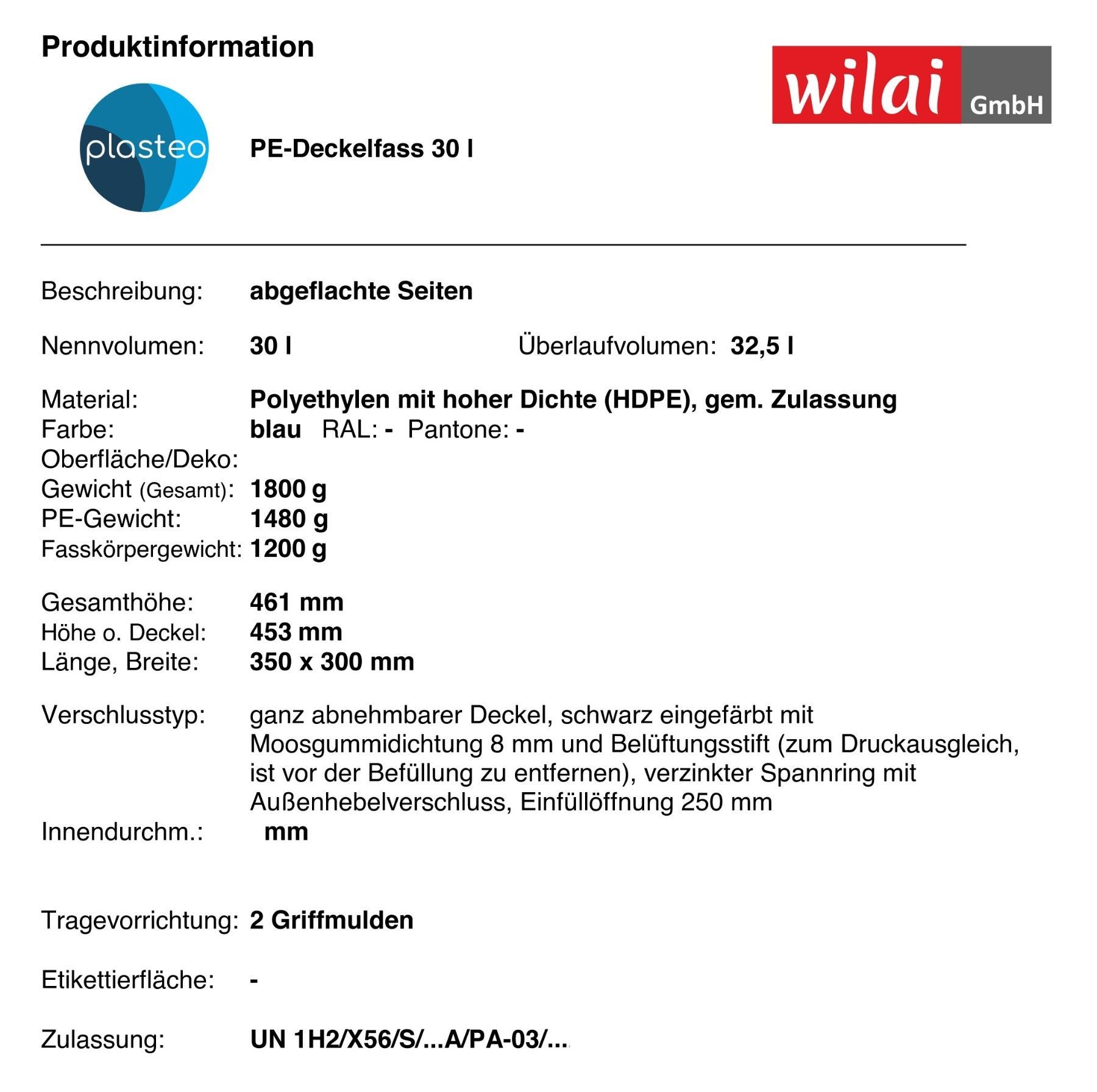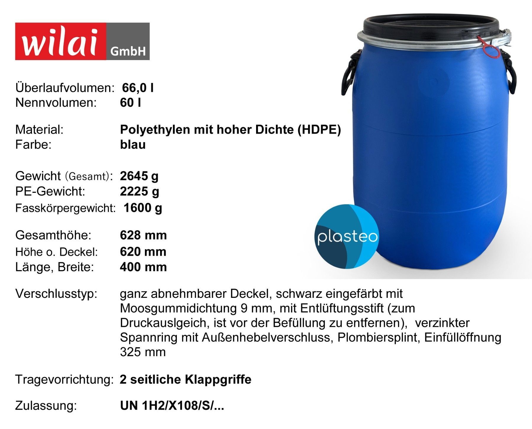 Plasteo Spundfass, Weithalsfass, Fass, Futtertonne, Regentonne, Regenfass