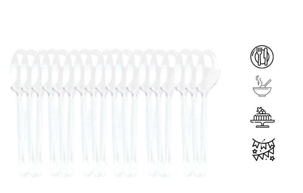 Plastiklöffel LUX - Transparent, Mehrwegbesteck, Plastikbesteck 100 Stück
