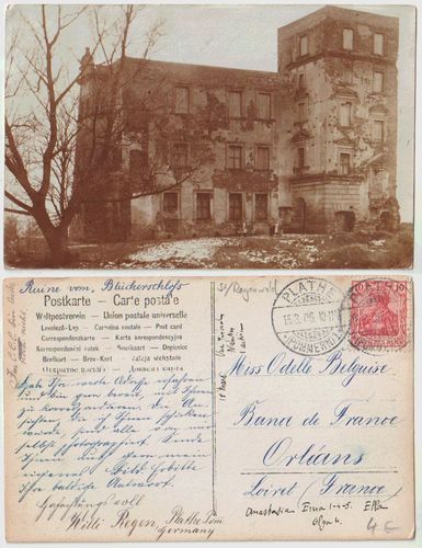 Plathe 1906 braune Fotokarte mit Blücherschlossruine