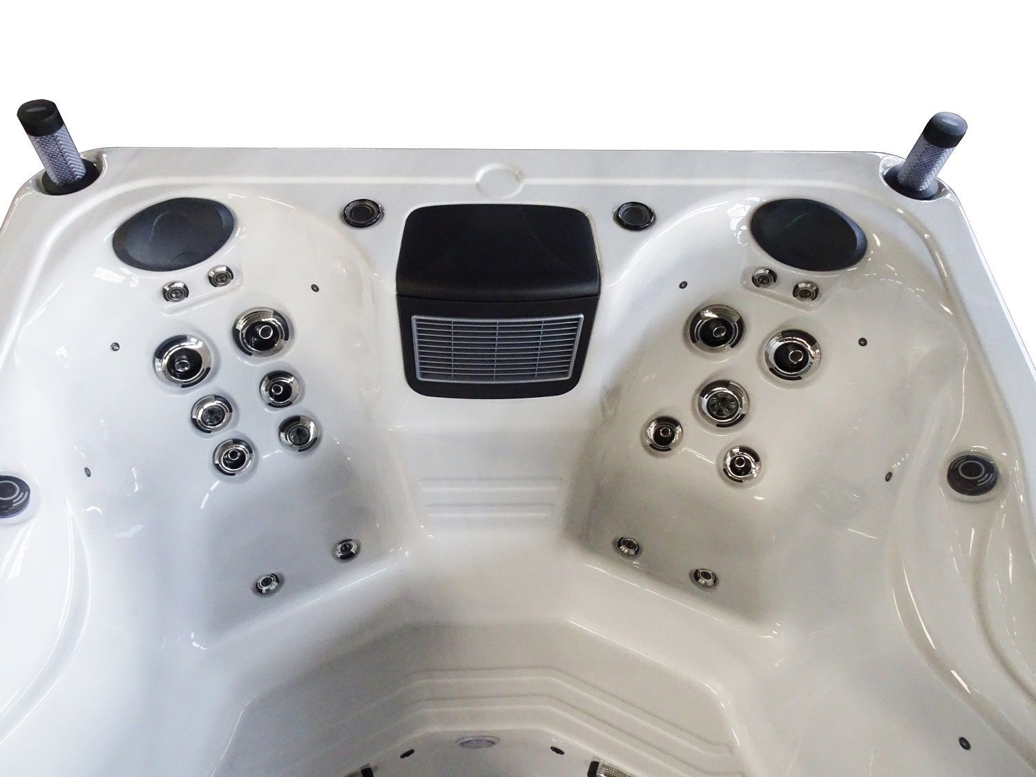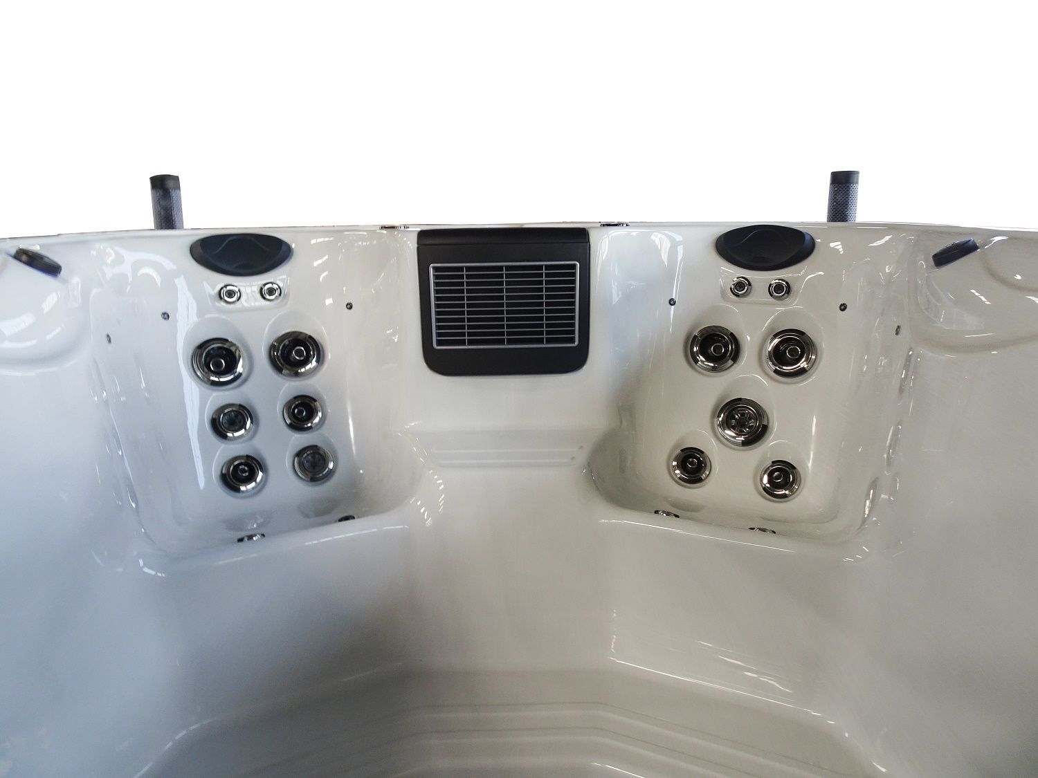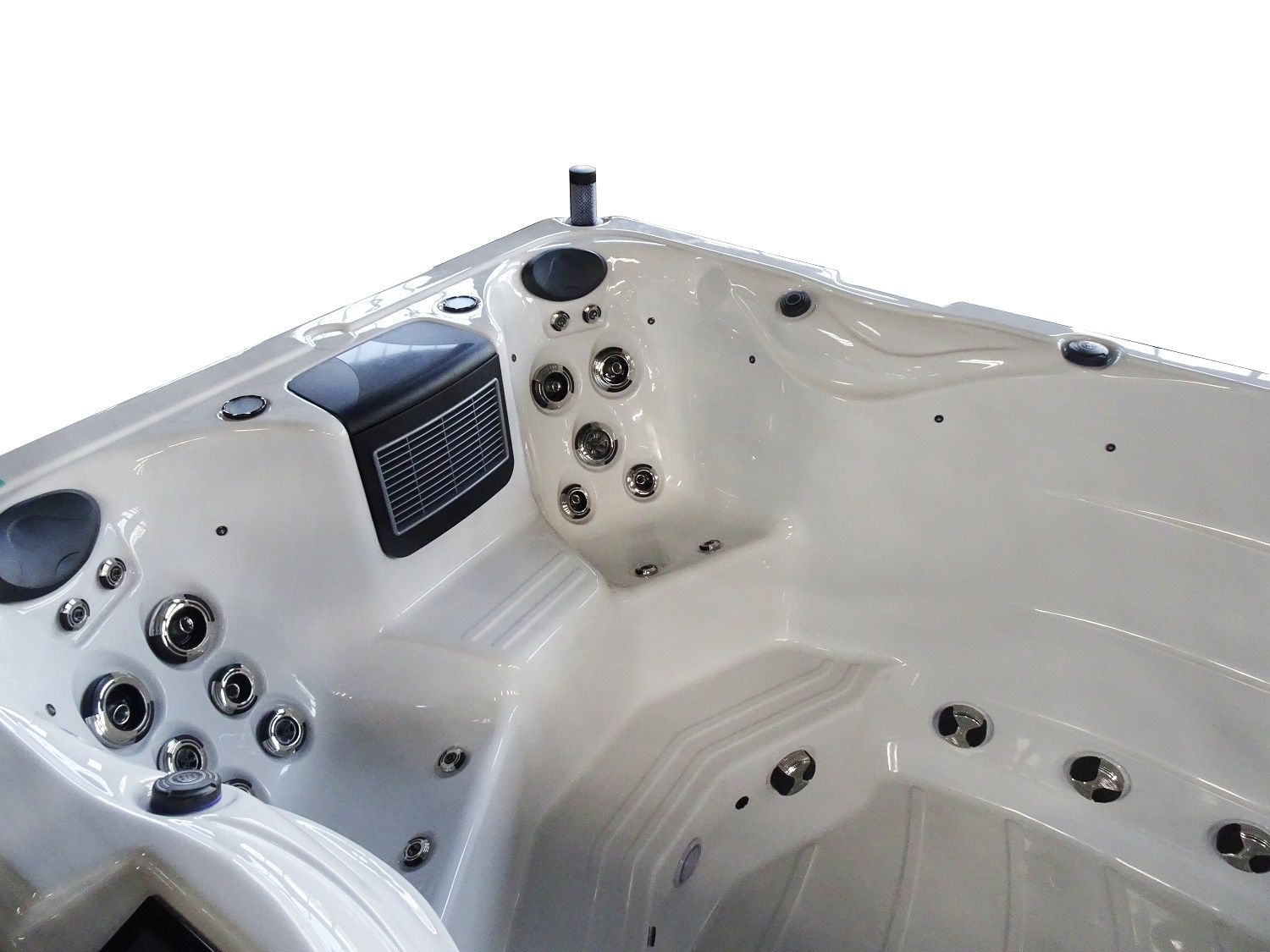 Kompakter Premium Swim Spa mit Turbinen-Gegenstromanlage, LED-Beleuchtung, Bruitsystem & Thermoabdeckung. Ideal für Training & Wellness im Garten.