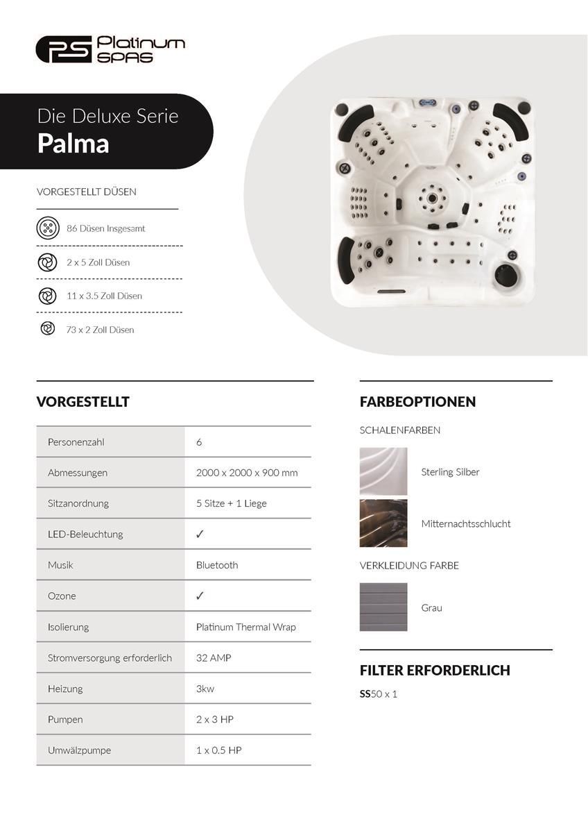 Platinum Spas Superior Whirlpool PALMA 200 x 200 x 90 Platinum Spas 6 Personen