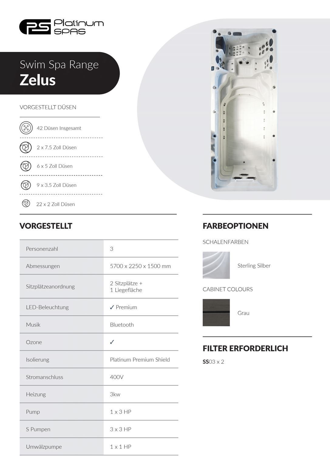 Platinum Spas Zelus Pro Swim Spa 570x225x150cm Turbine inkl. Cover Swimspa