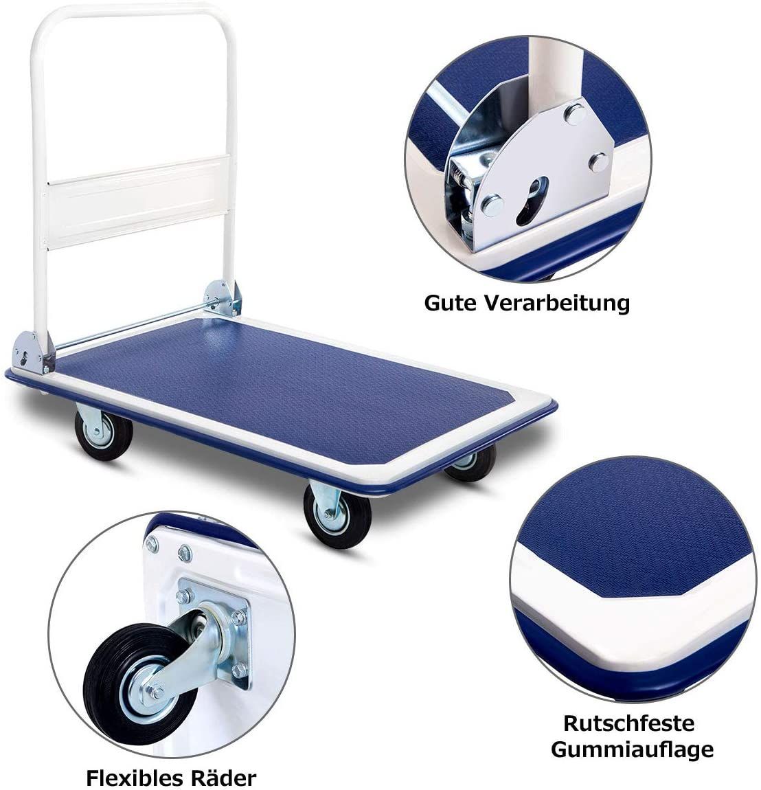 Plattformwagen 300kg Rollwagen Transportkarre Sackkarre Handewagen 90x60cm Klappwagen