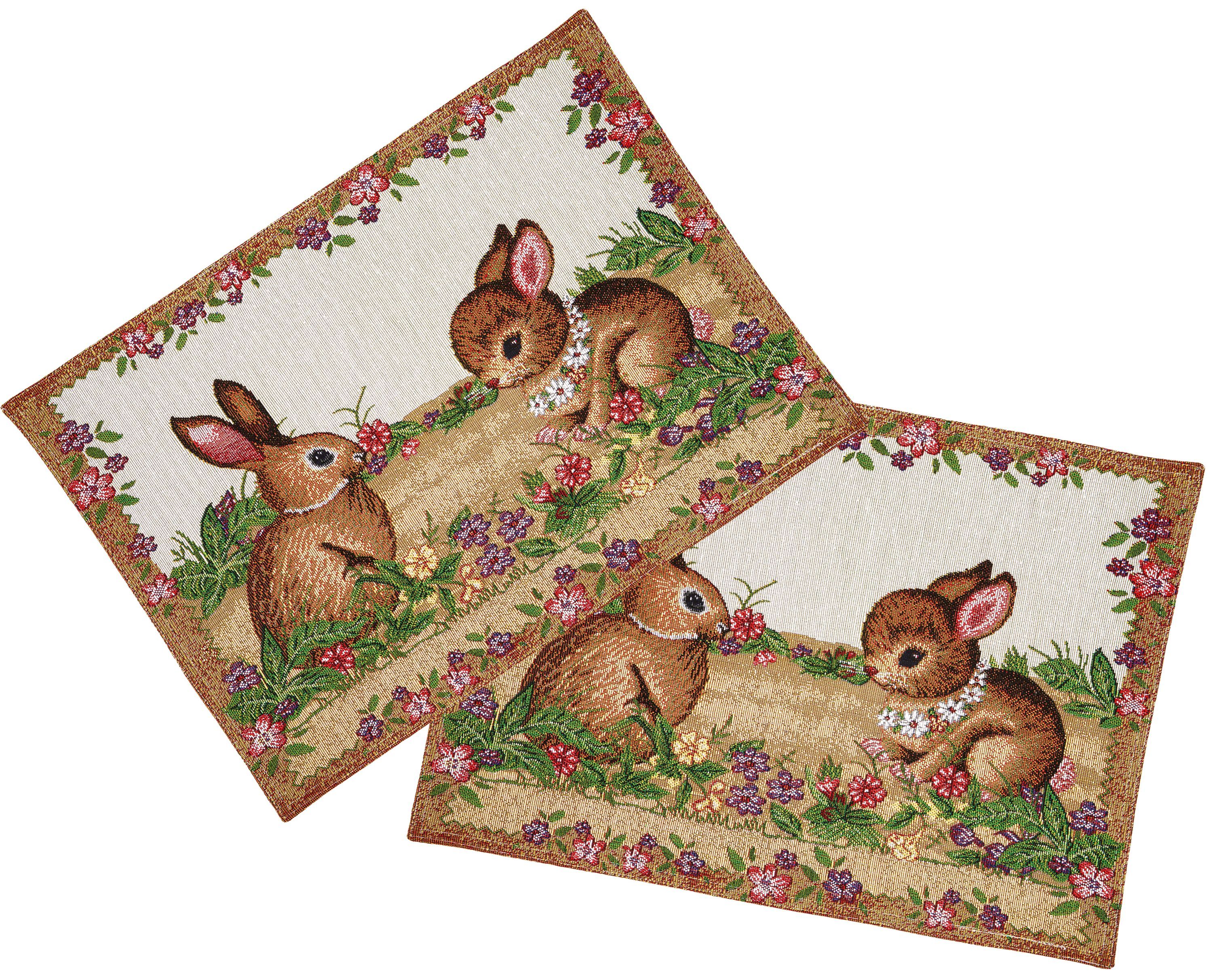 Platzdeckchen Set Ostern Gobelin Platzset 2 teilig Tischset Osterhasen Deckchen