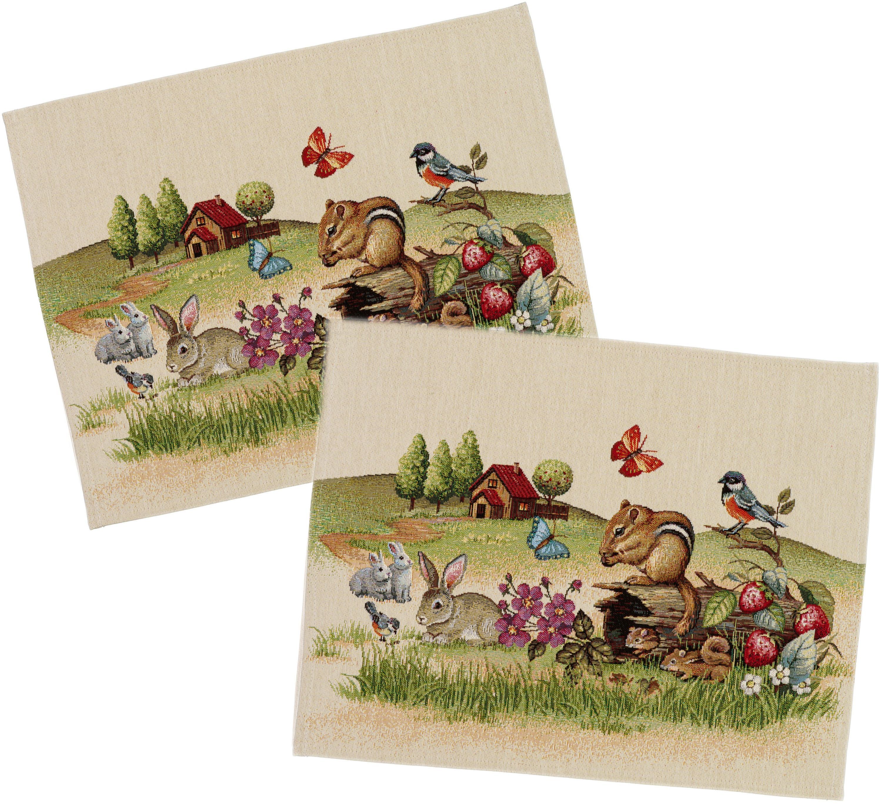 Platzdeckchen Set Platzset Gobelin Tischset Untersetzer Tiere Made in Germany