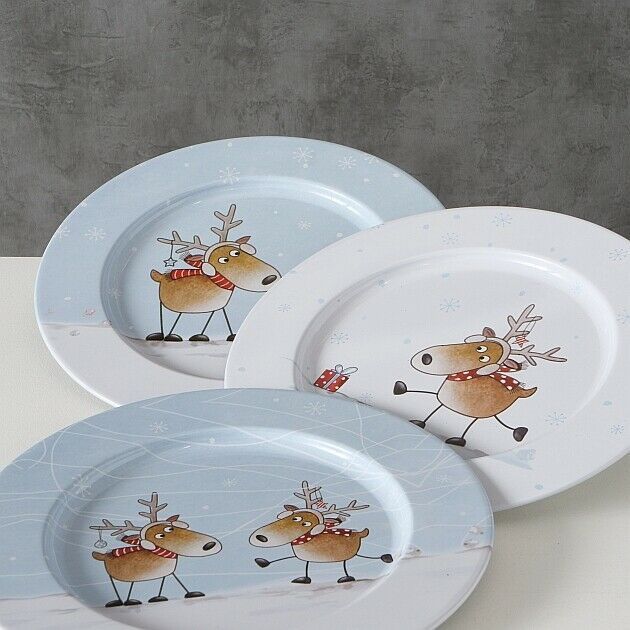 Boltze Platzteller Winter Elch Metall Kekse für Gebäck Bunter Teller Advent Ø 33cm