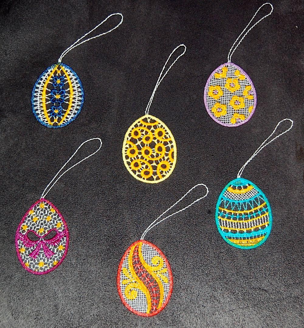 Plauener Spitze 6er Set Osterstrauß Behang Spitzenbilder Osterdekoration Ostereier Bu