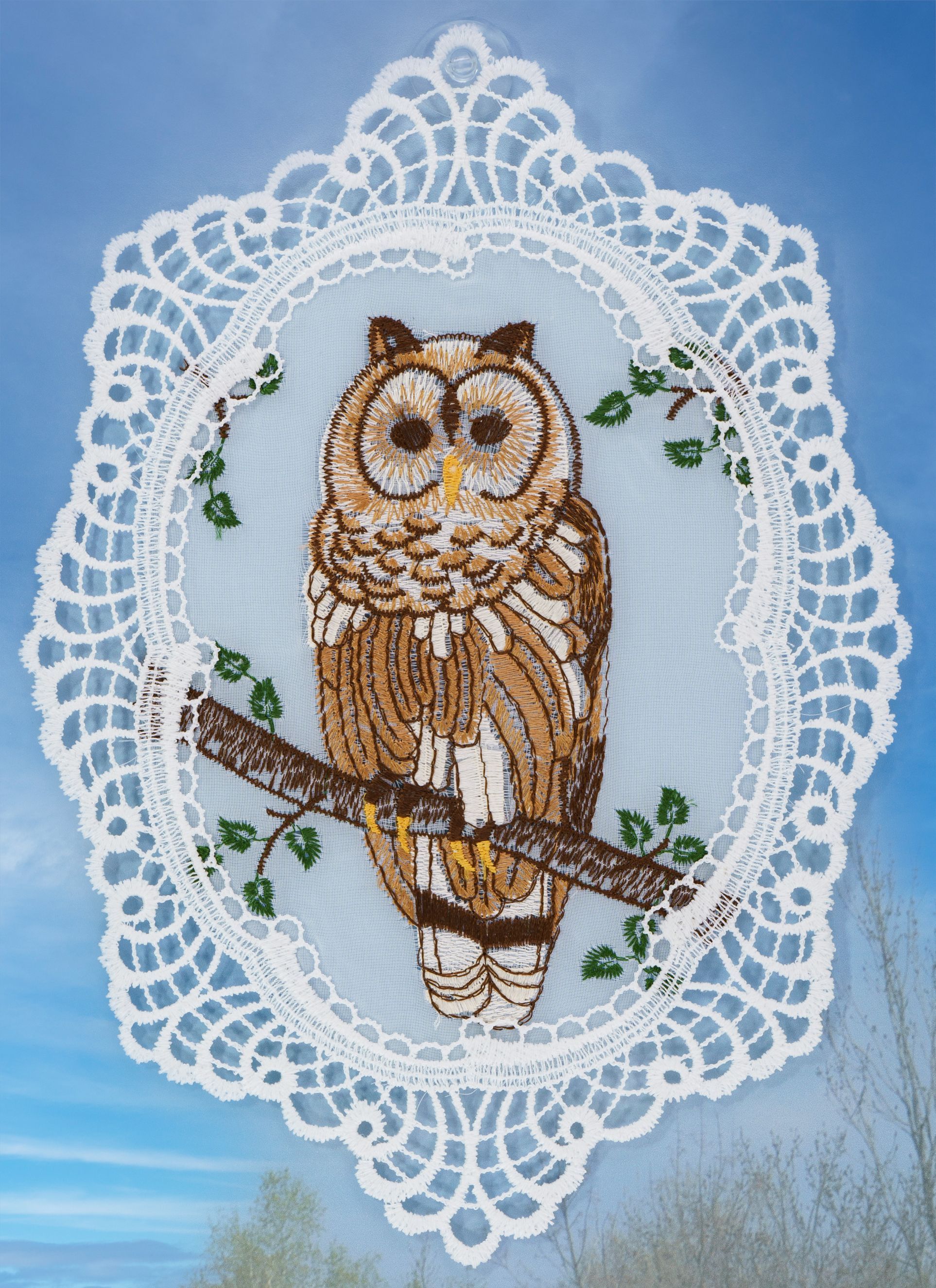 Plauener Spitze Fensterbild Eule 28 cm Fensterdekoration Herbst Fensterschmuck Scheib