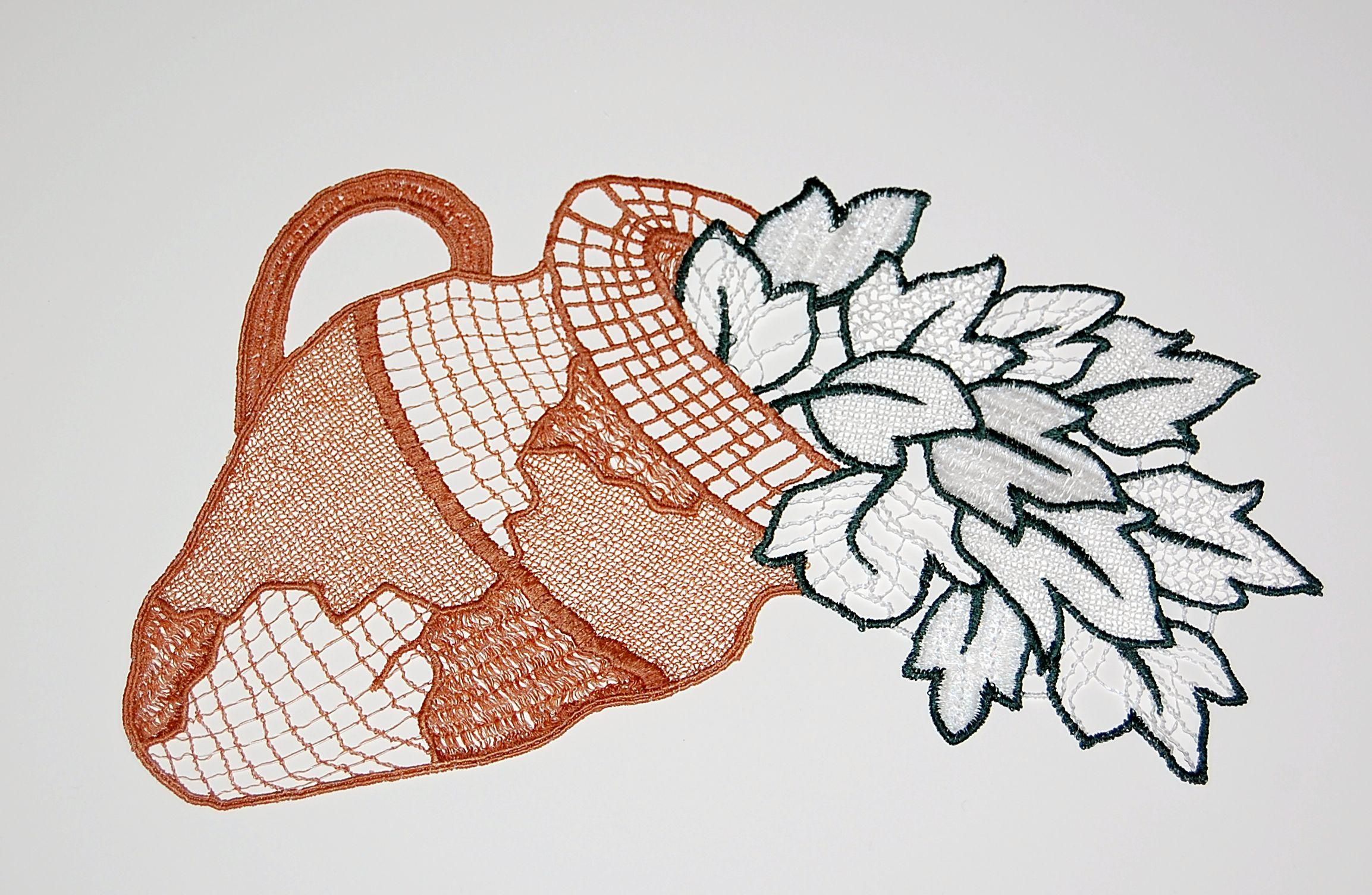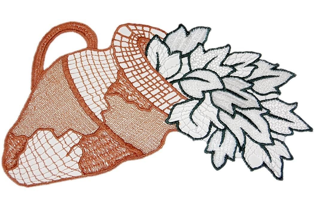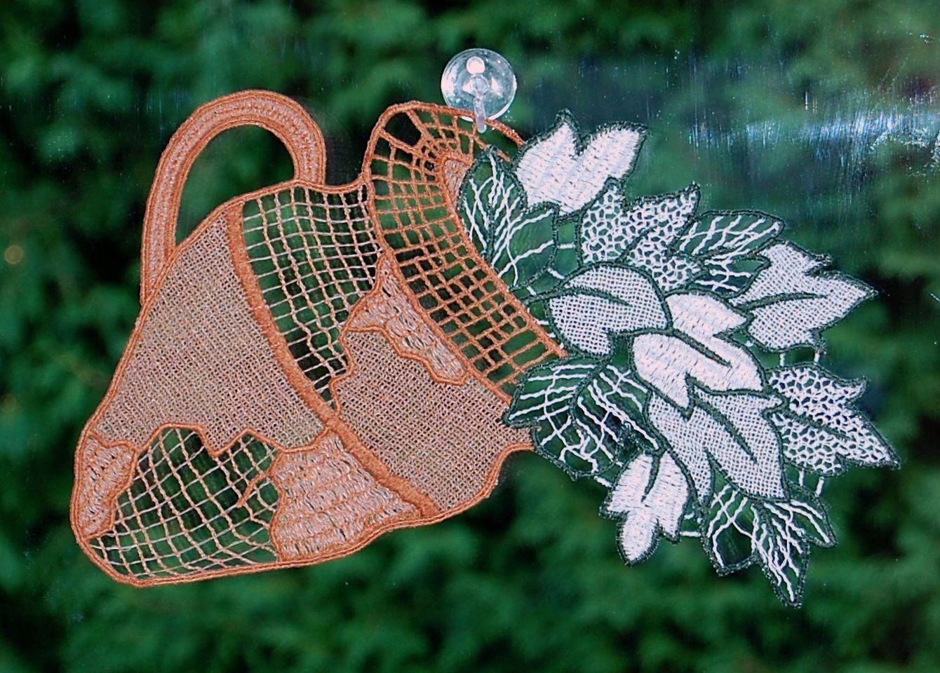 Plauener Spitze Fensterbild Krug Terrakotta Efeu Fensterdekoration Mediterran Fenster